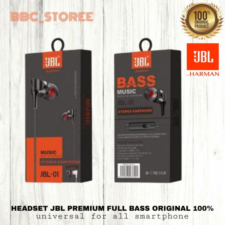 Headset JBL Premium Full Bass Original 100% Earphone Headset Hands Free Hitam Universal High Quality Stylish