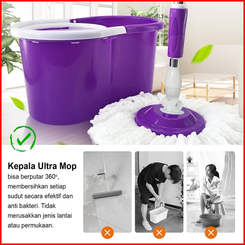 Mop Magic Spin Set Alat Pel Lantai Stainless Super Mop Dengan Ember Pencuci Putar Bahan Pp Plastik Hand Preassure Rotary