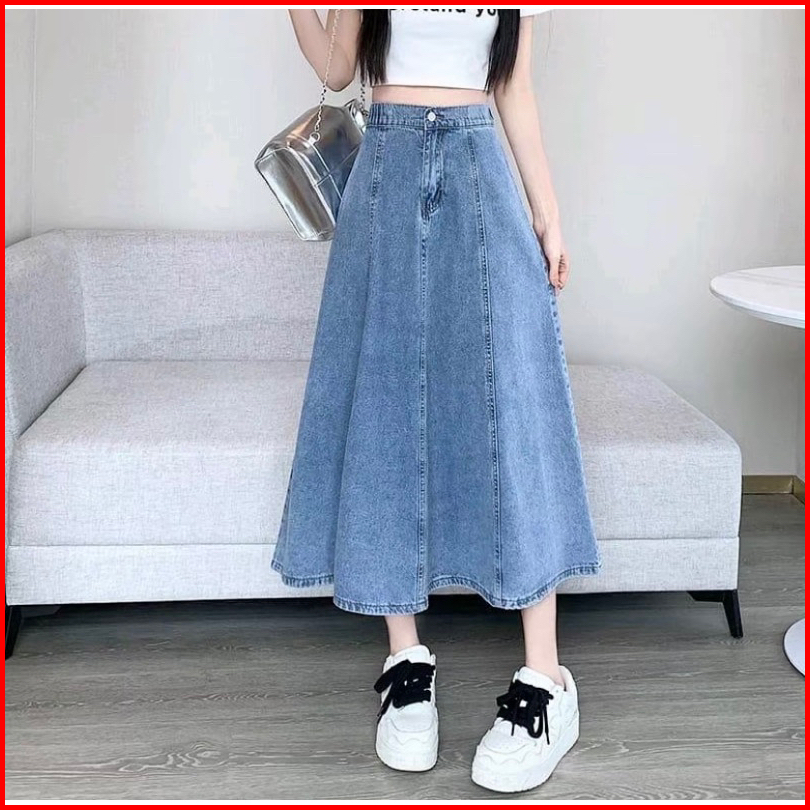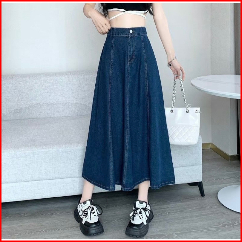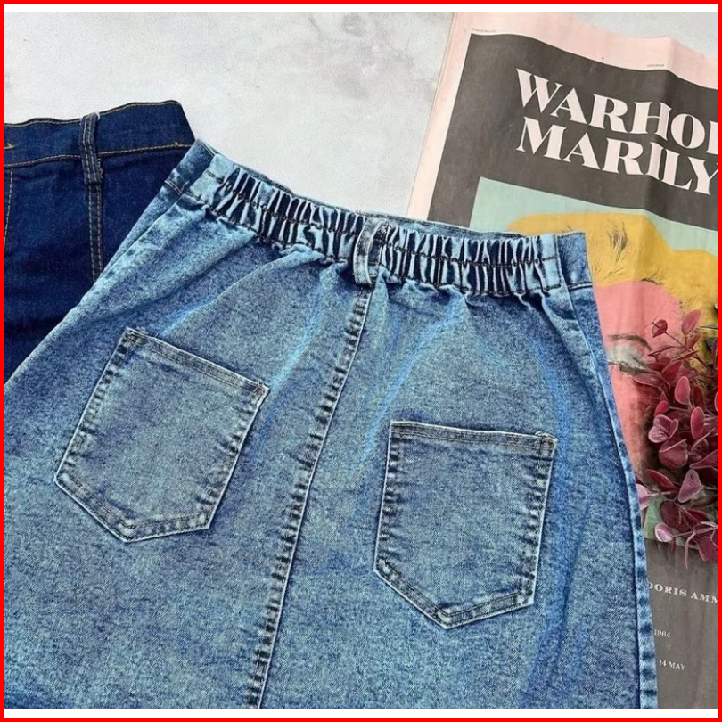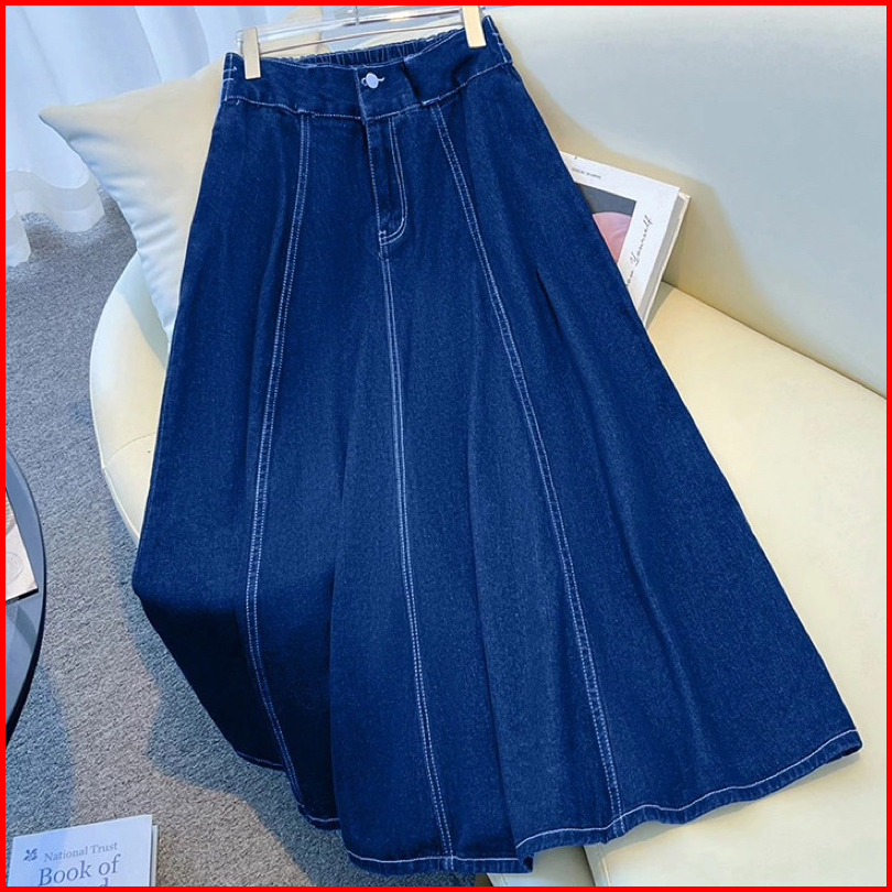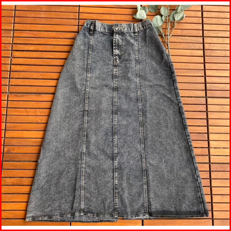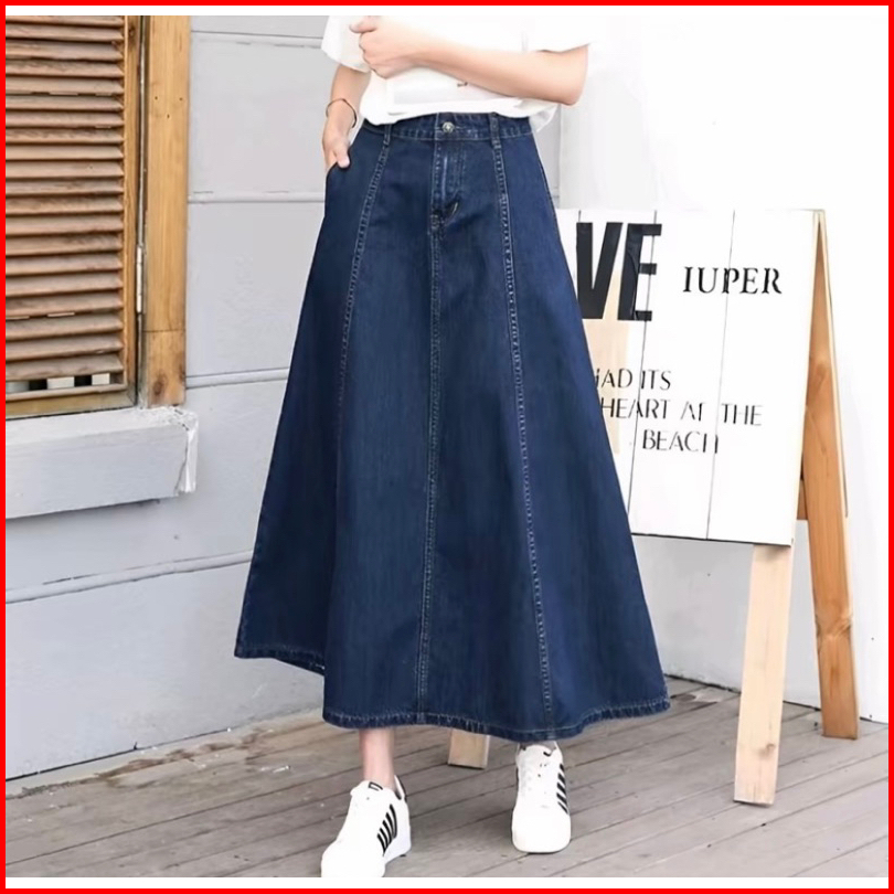 Jisso Rok Jeans Mayung Premium Wanita A-line 7 8 Model Payung Pinggang Karet -rok Wanita Hihgwaist Kekinian