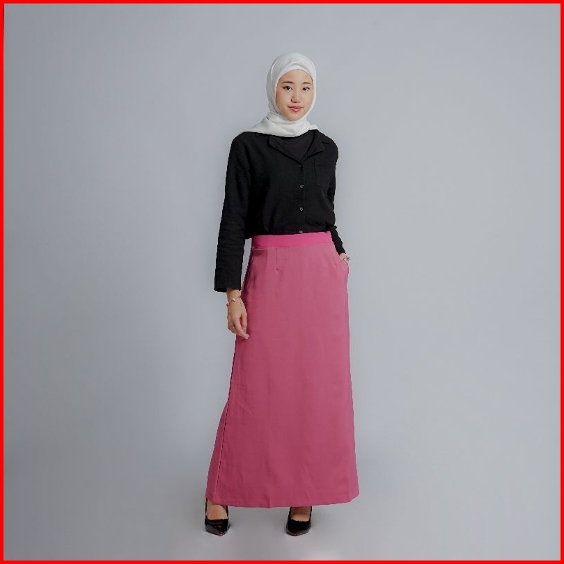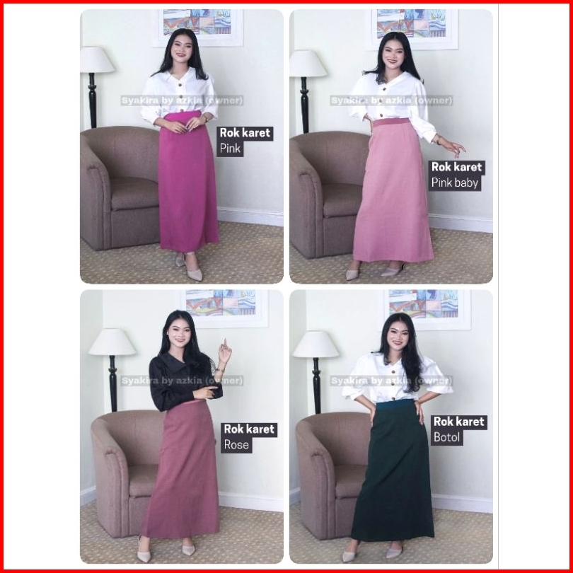 Rok Kerja Wanita Terbaru Model A Line Pinggang Karet Polyester Stretch Import Syakira By Azkia
