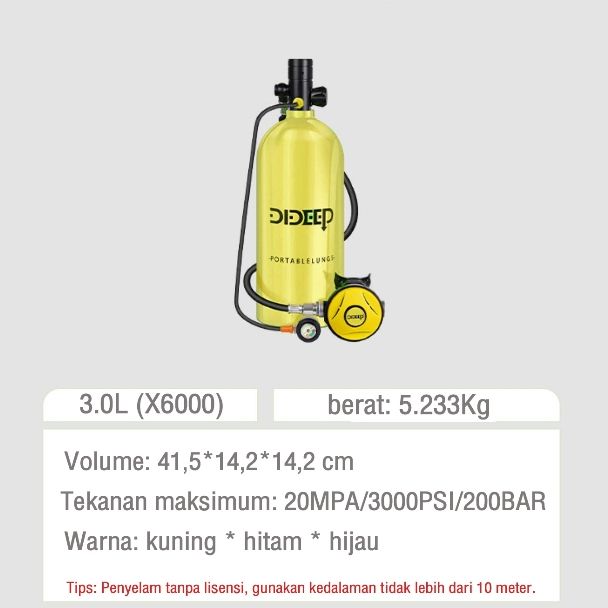 DIDEEP KAPASITAS TINGGI BOTOL SELAM SCUBA PORTABEL 3L SNORKLING ALAT SELAM TANGKI PARU-PARU MENYELAM BERAT 8,5KG