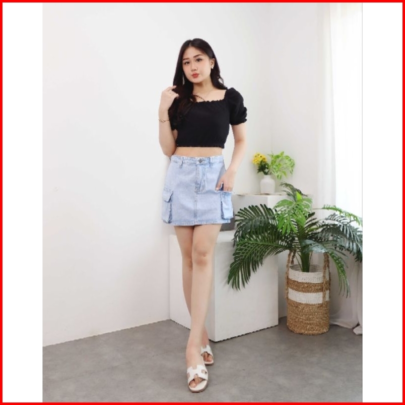Khlove89 - Rok Cargo Highwaist Mini Jeans Wanita