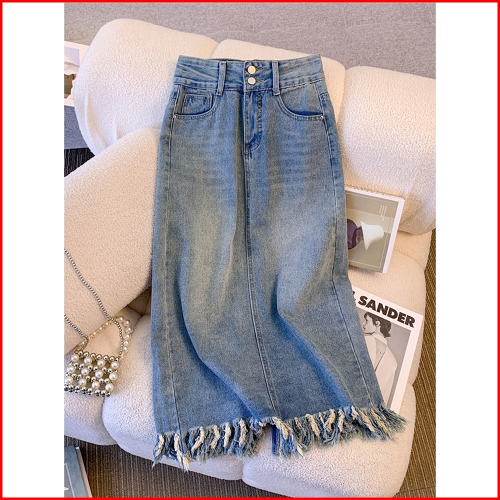 Korea Rok A-line Denim Panjang Retro Rok Jeans Pinggang Tinggi Rok Wanita Kekinian