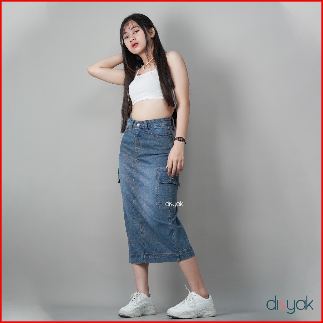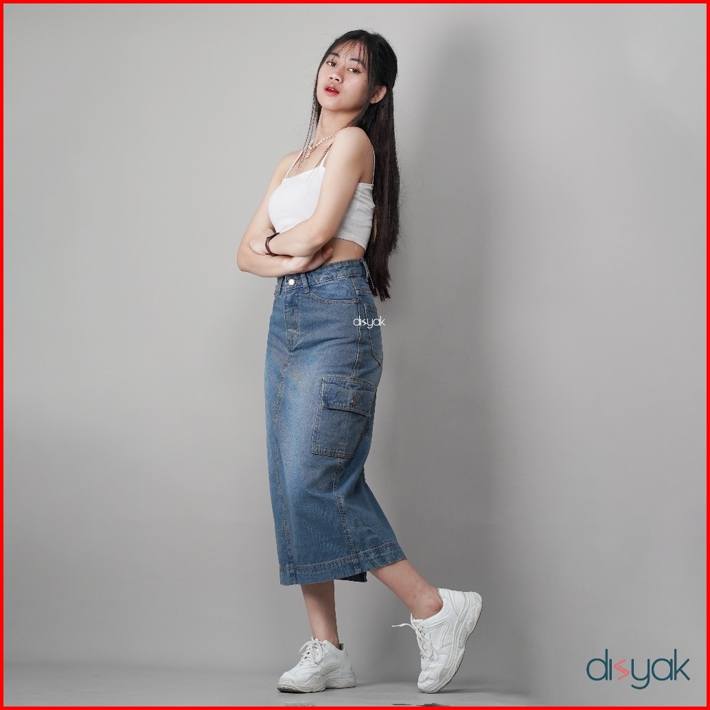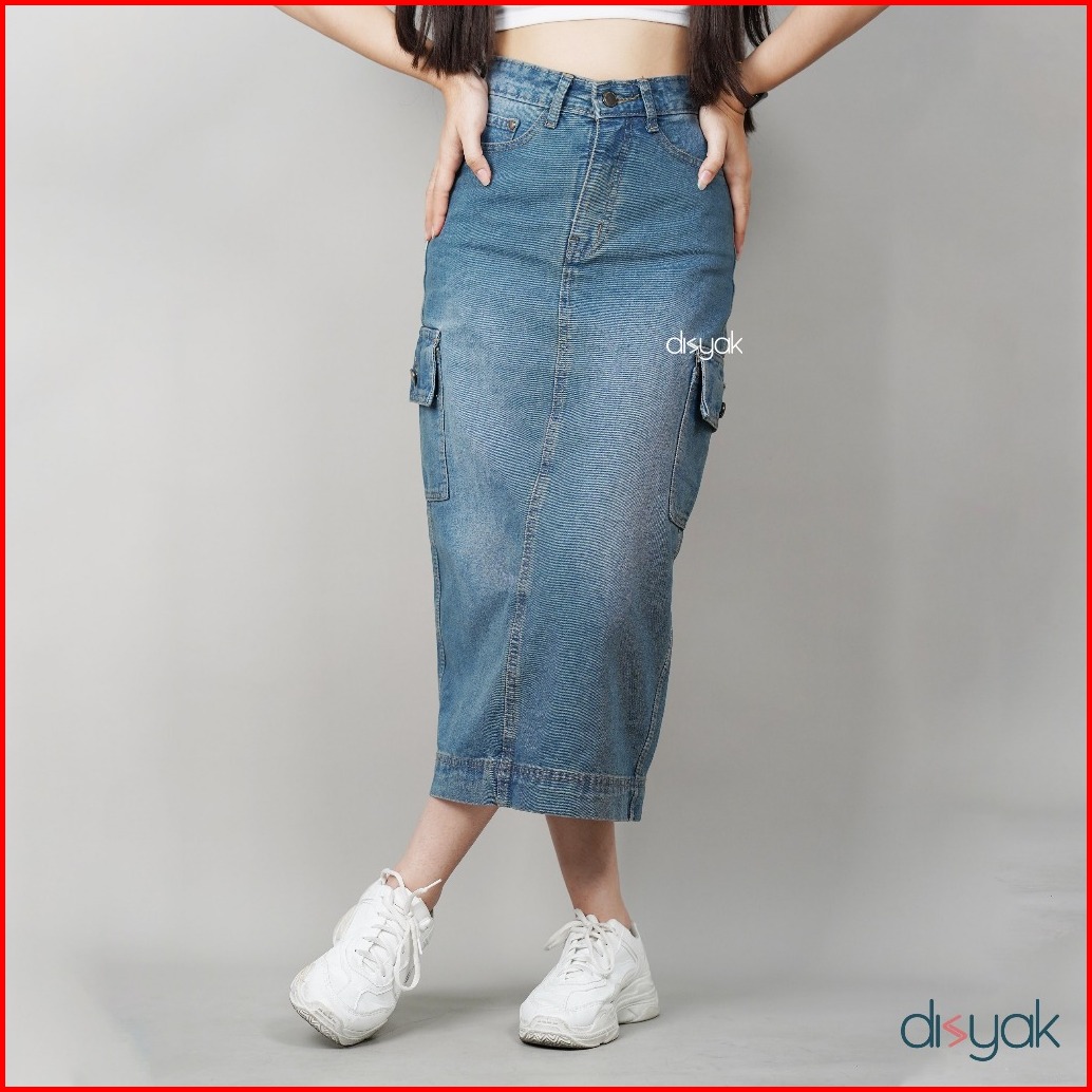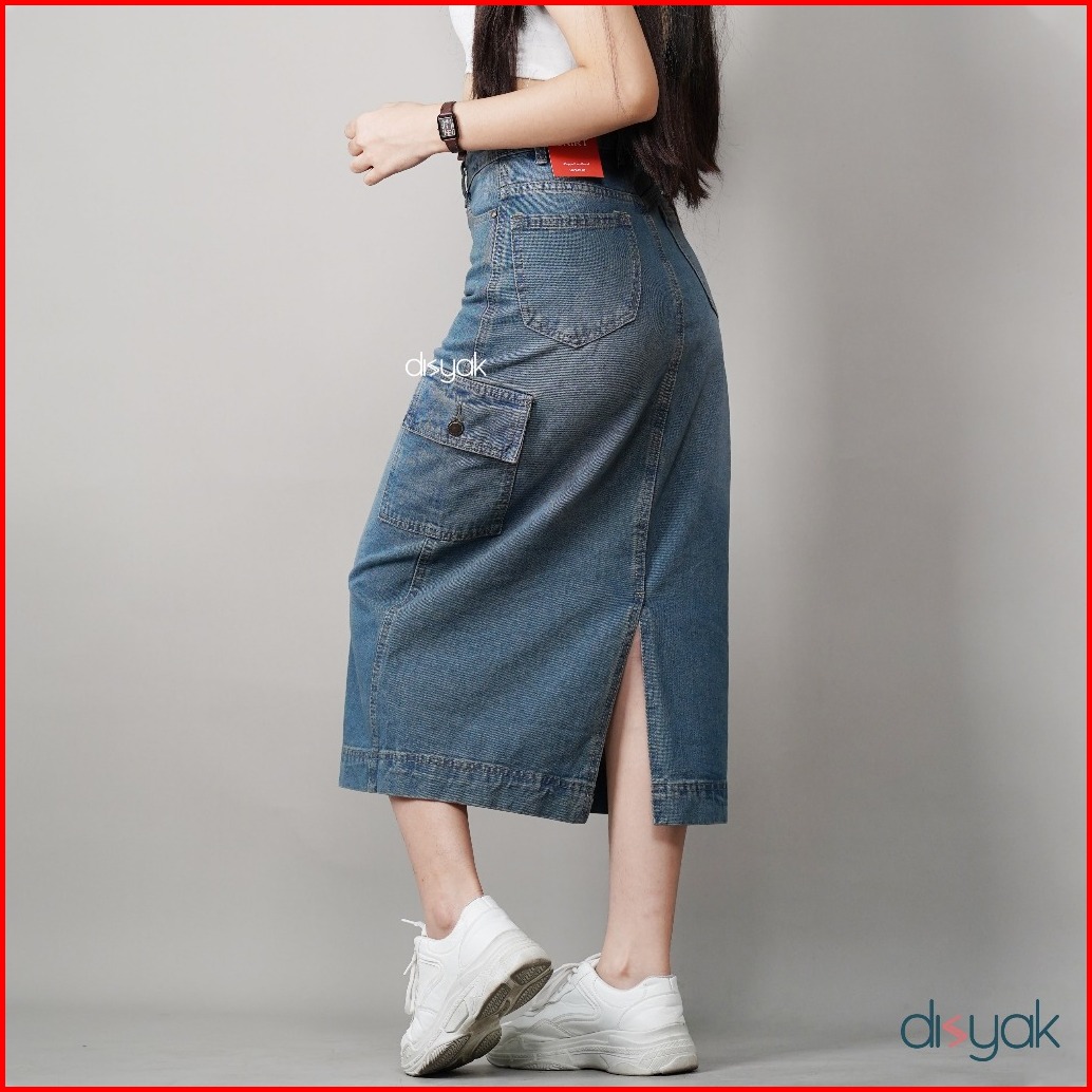 Disyak - Rok Cargo Highwaist Midi Skirt Jeans Non Strecth Vintage Blue 8311-8411