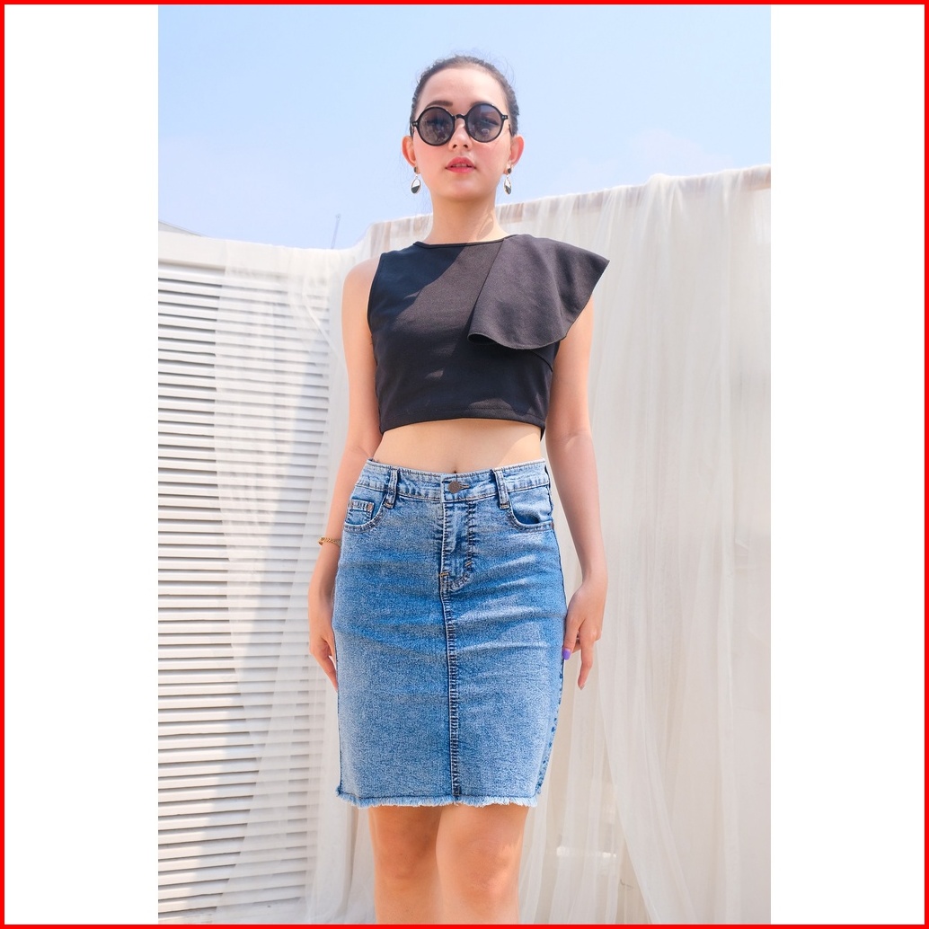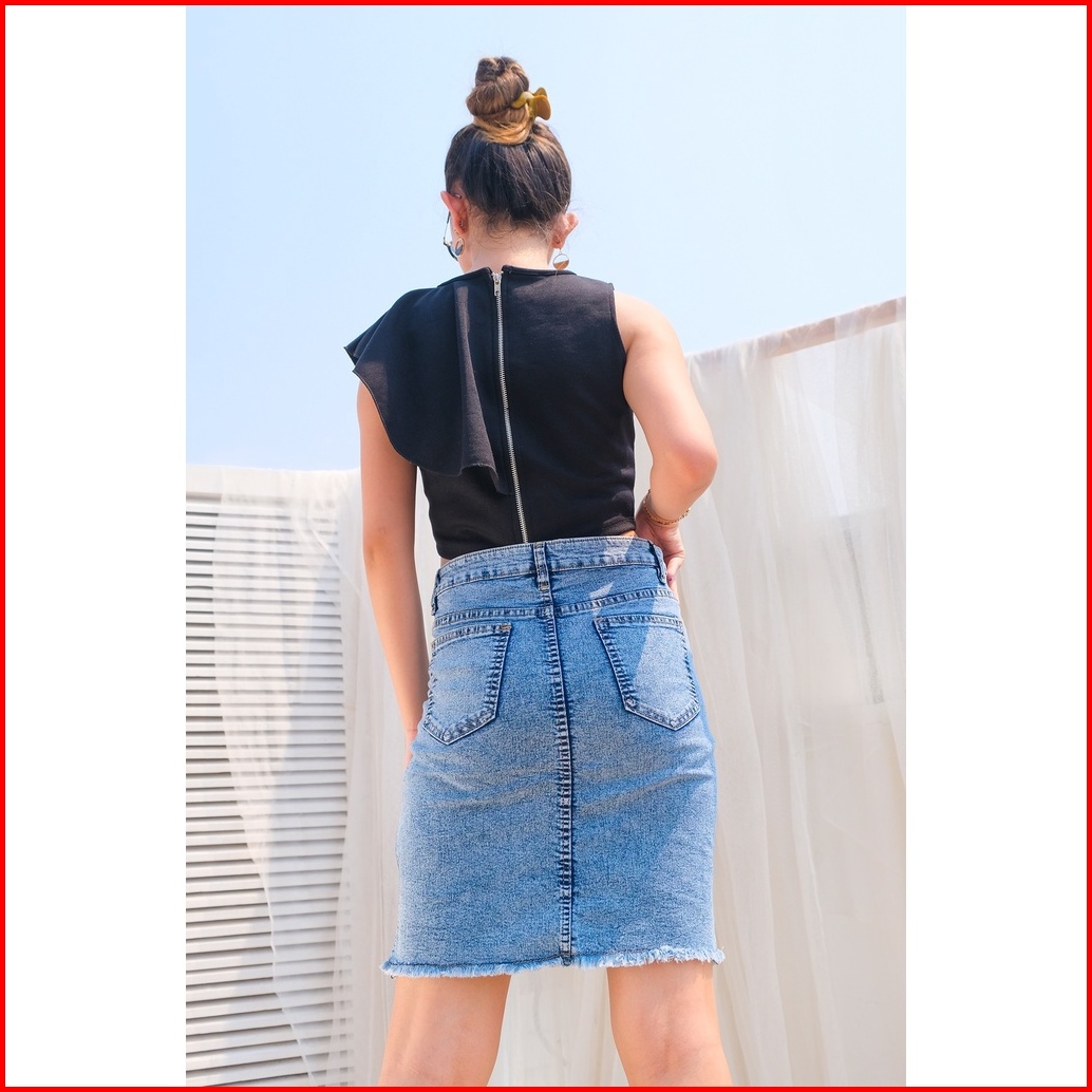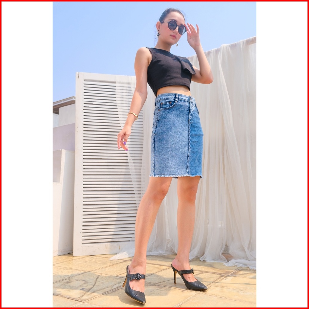 Bandidas - Rok Jeans Pendek Wantia Rok Mini Denim Model Rawis