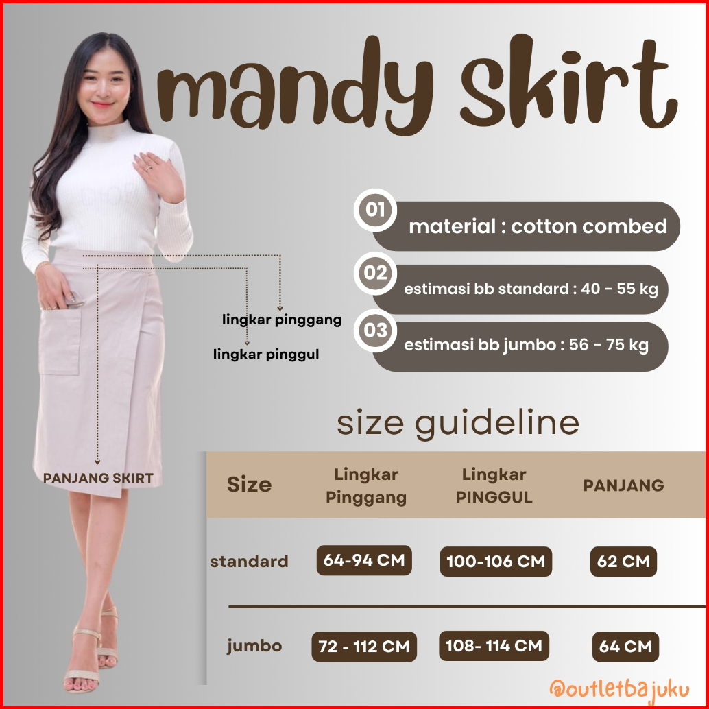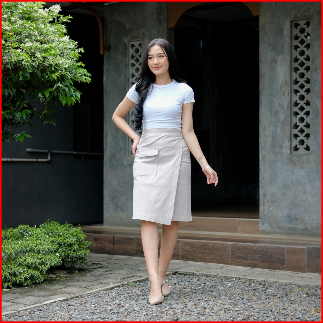 Mandye Skirt Stretch Rok Midi Stretch Asimetris A-line Androk Formal Casual Wanita Rok Kantor