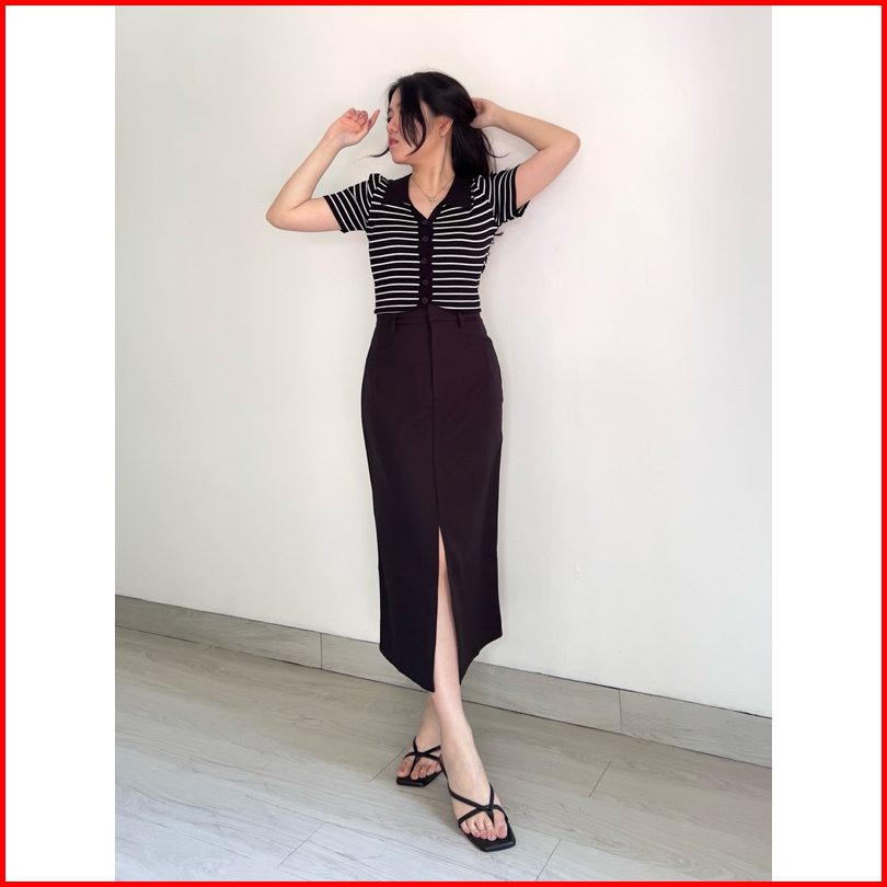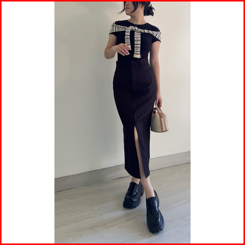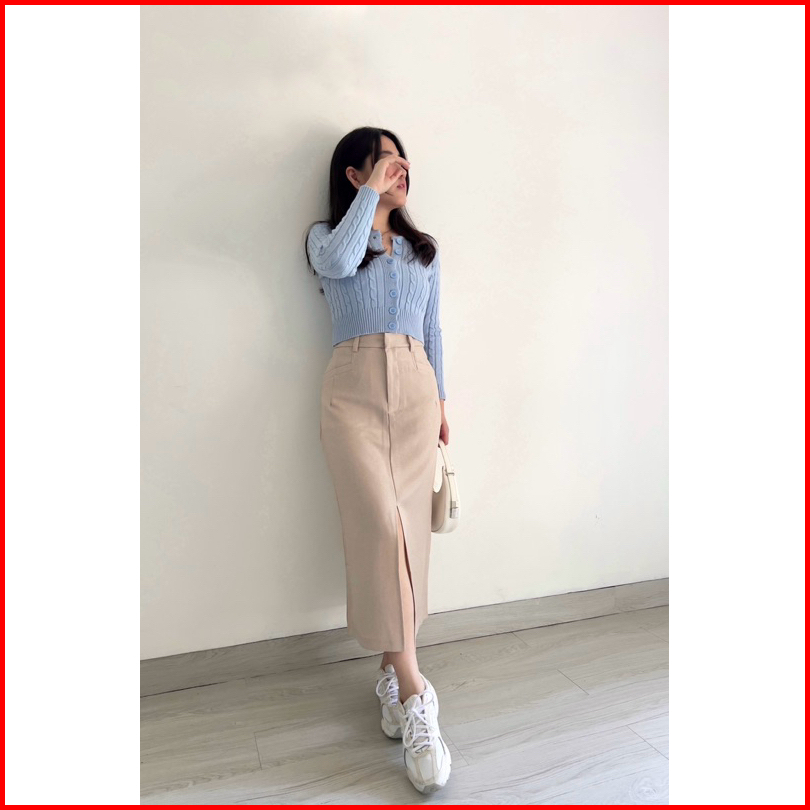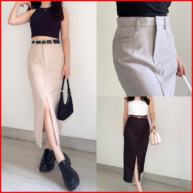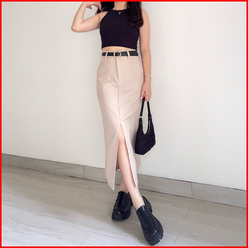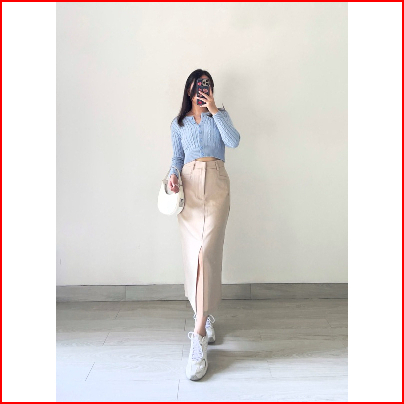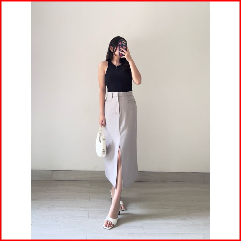 Klavee - Milen Midi Skirt Rok Midi Slit Bahan Wanita Basic Premium Korean Style Skirt