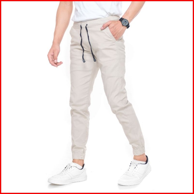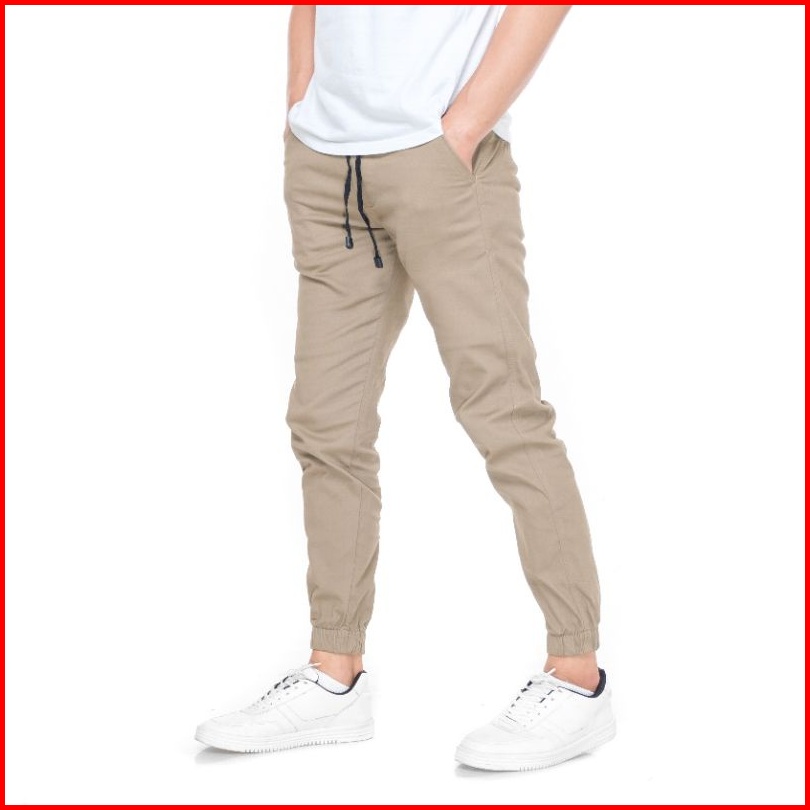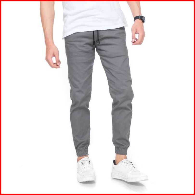 Celana Panjang Joger Pria Korean Style Bahan Katun Pinggang Karet Slim Fit Kualitas Premium