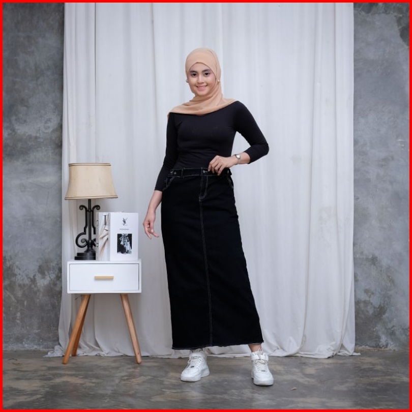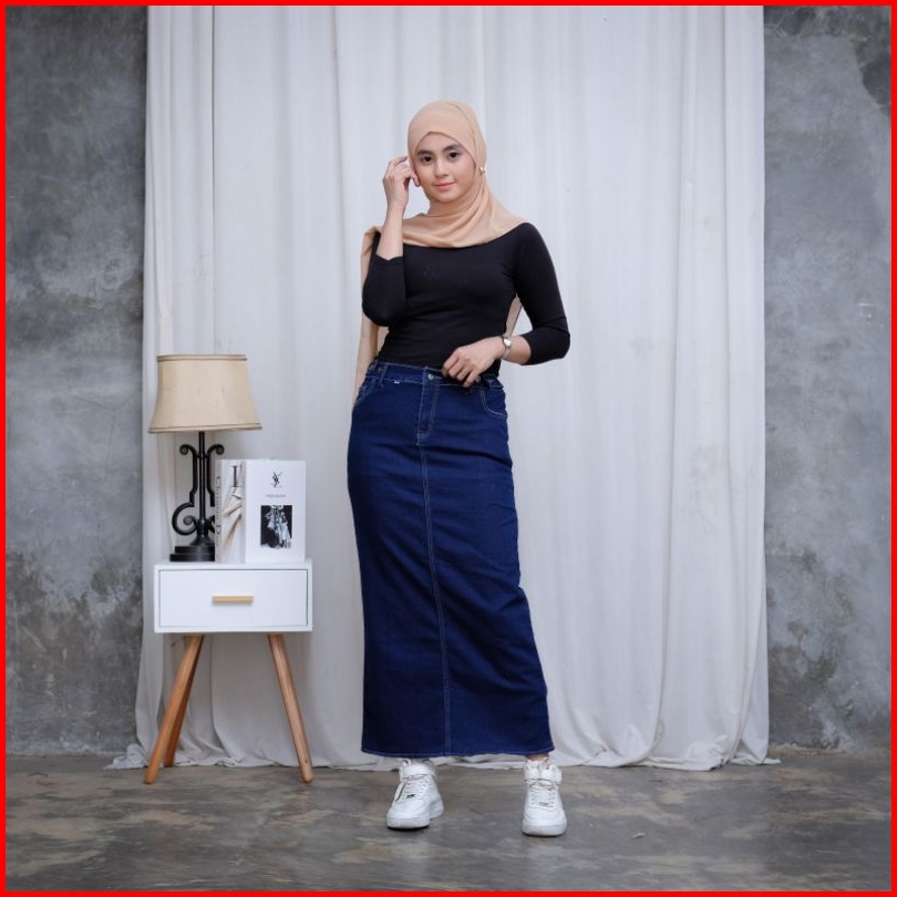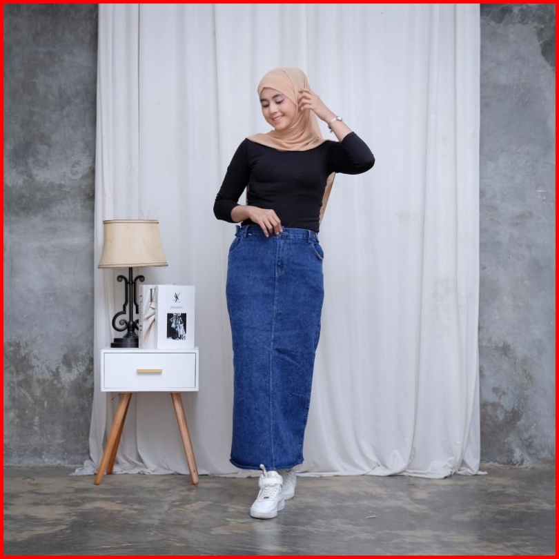 Highwais Rok Jeans Skirt Teana Belah Kekinian Korean Style