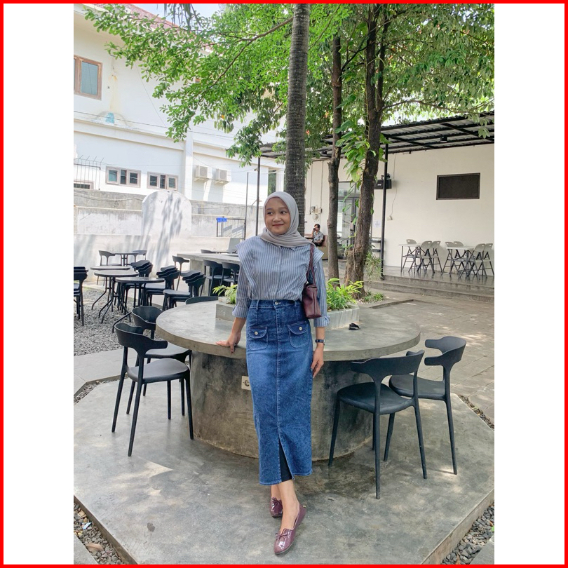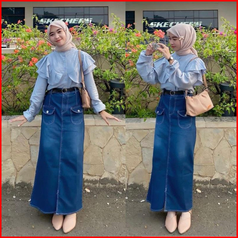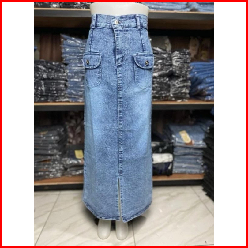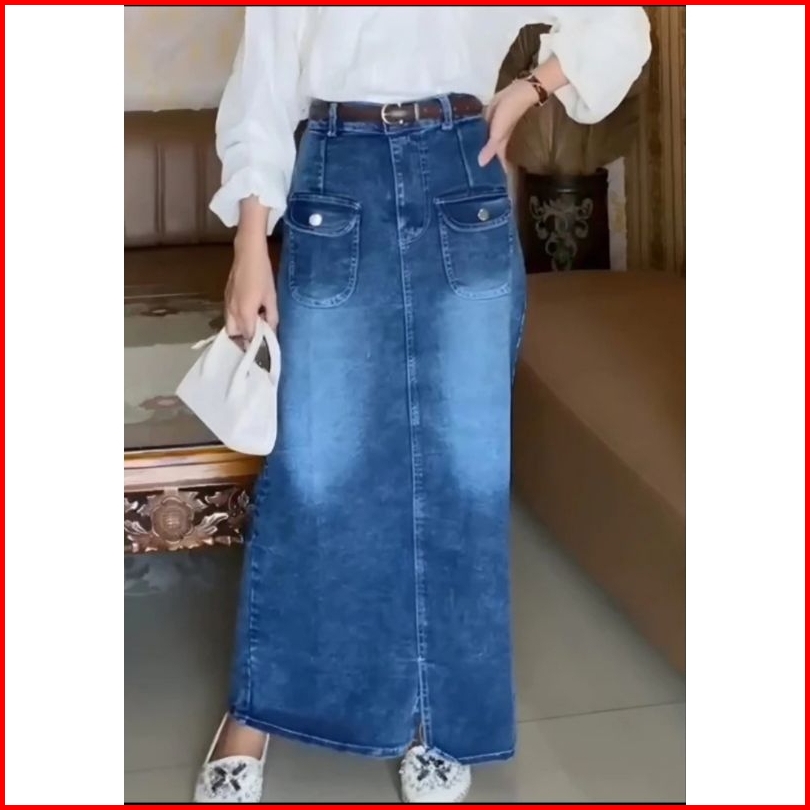 Lemon2 Rok Jeans Highwash Wanita Span Panjang Terbaru Korean Style