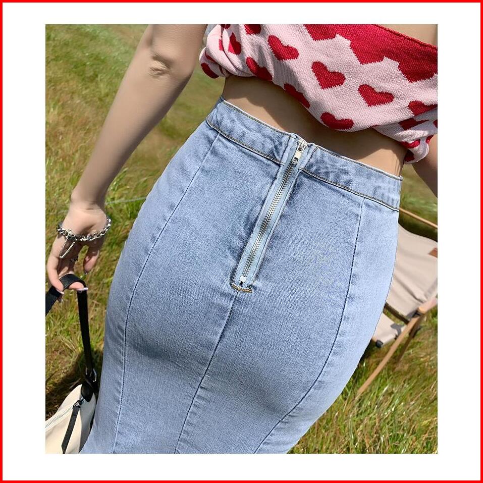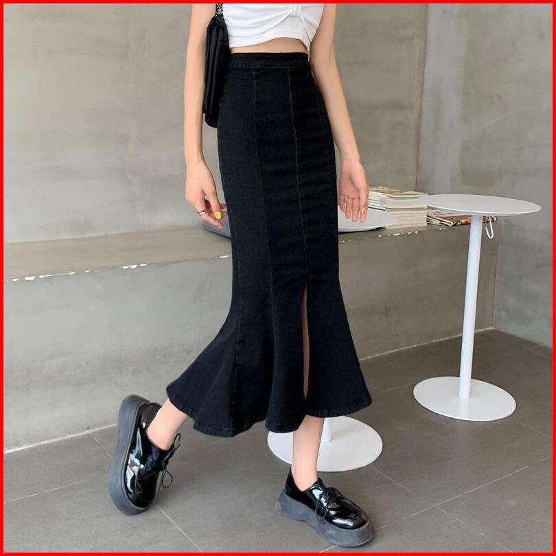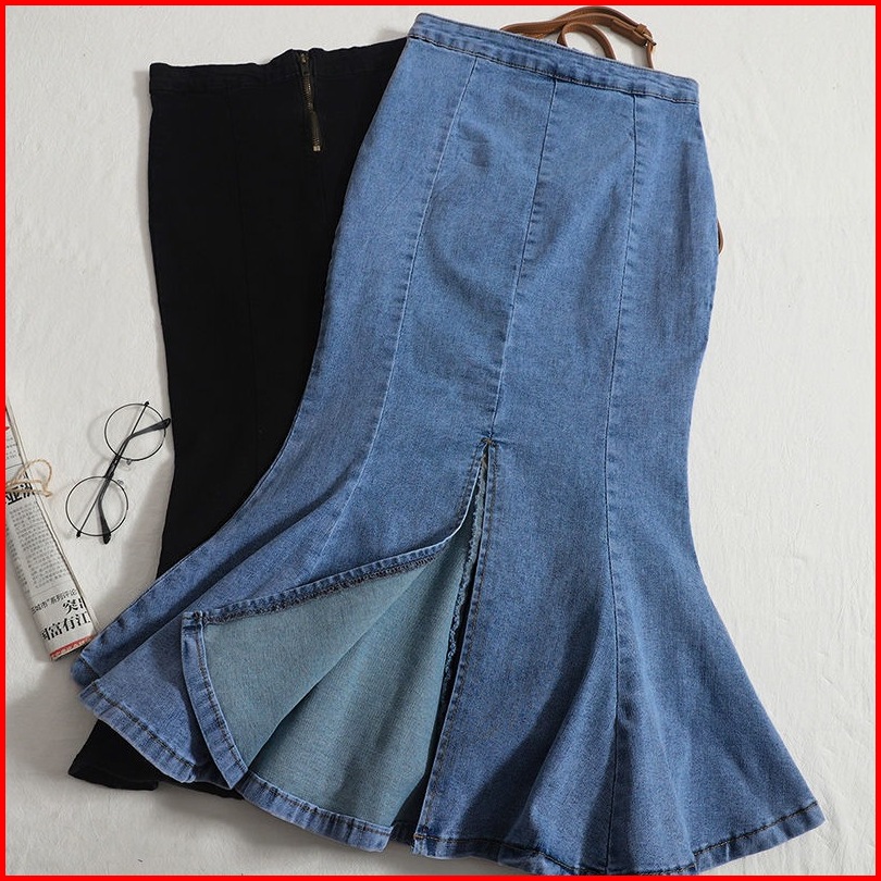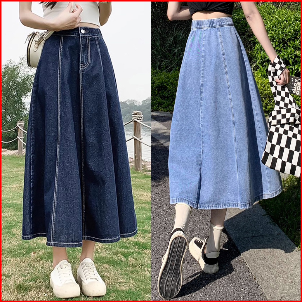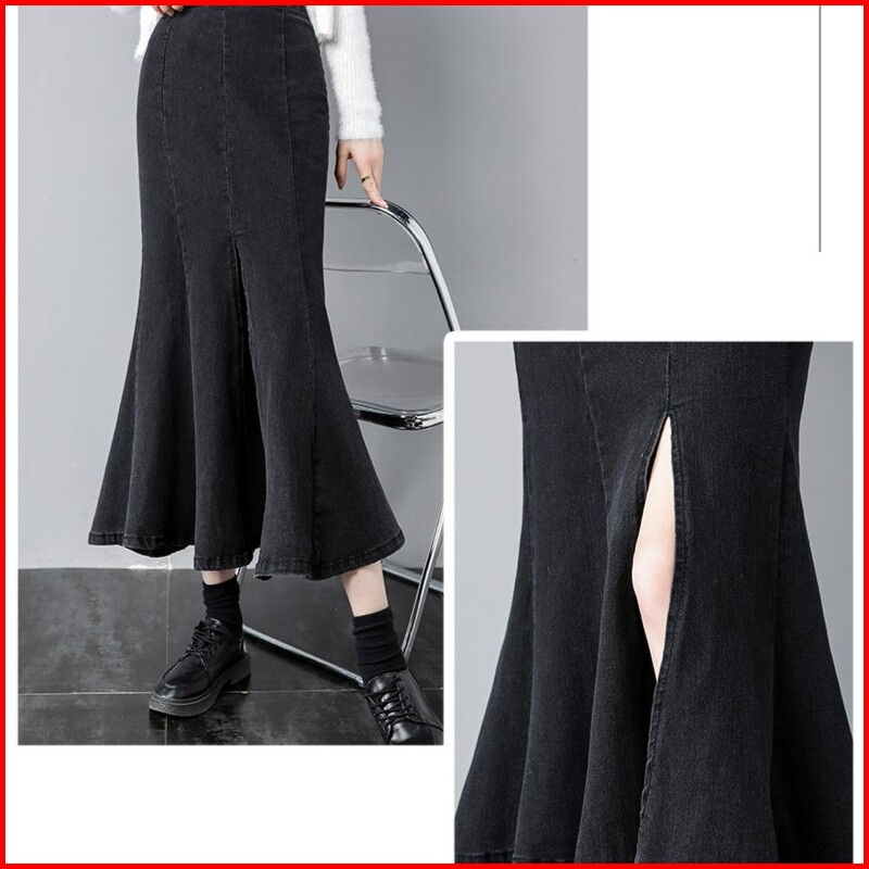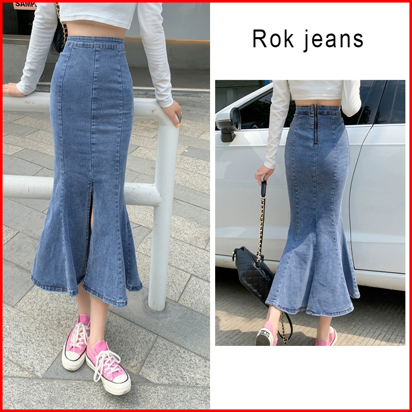 Elegan.girl Rok Denim Slit Stretch Span Panjang Hyuna Denim Skrit Rok Jeans Maxi Skrit Rok Maxi Rok Denim Rok Kekinian P