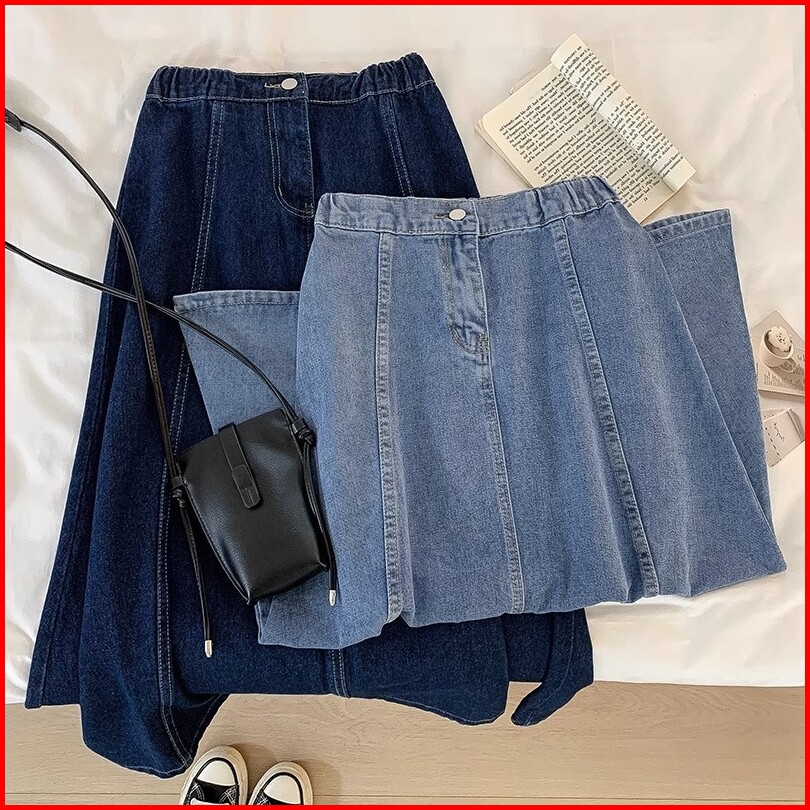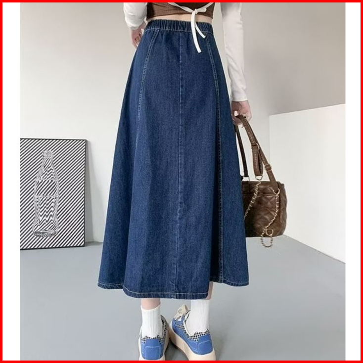 Rok Panjang Denim Skirt Rok Midi Highwaist Jeans Korea Style Rok A-line Tombol Fashion Ootd Rok Jeans Jumbo Size Kekinia