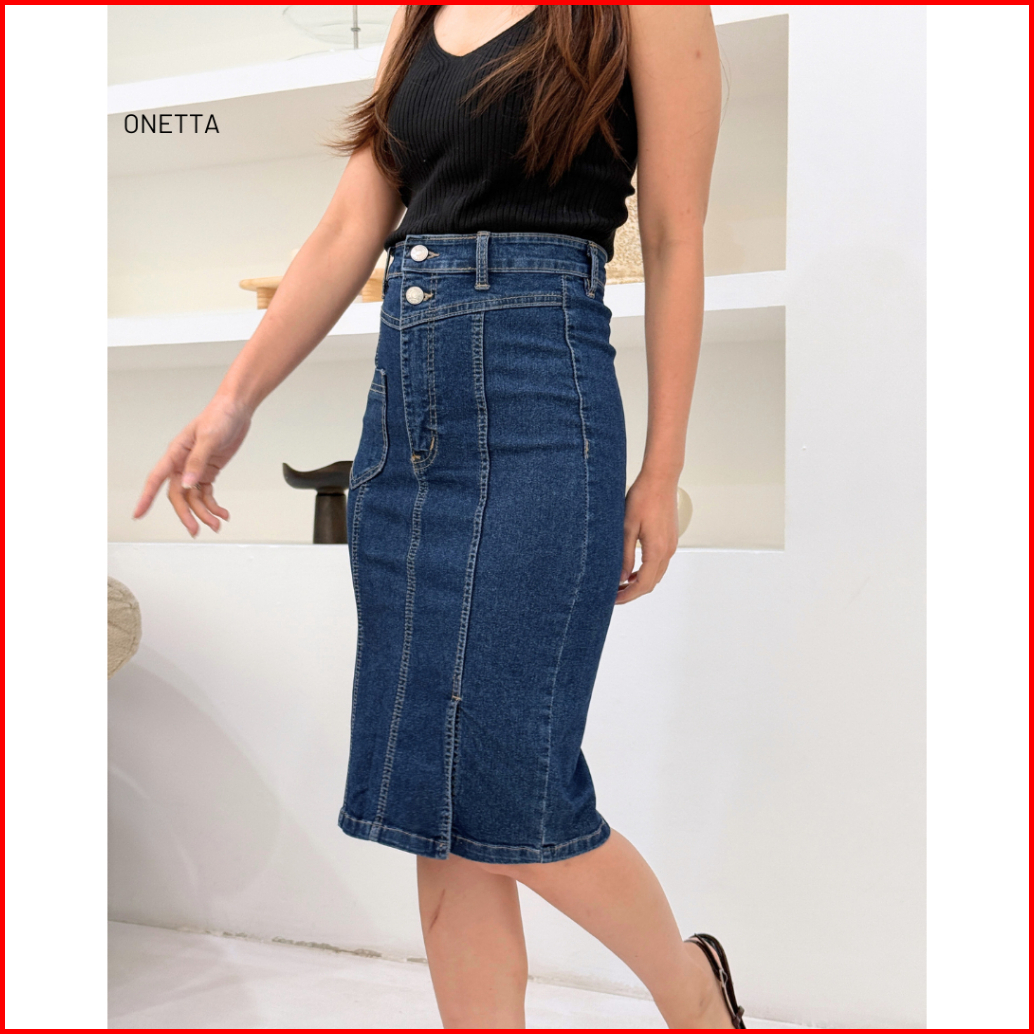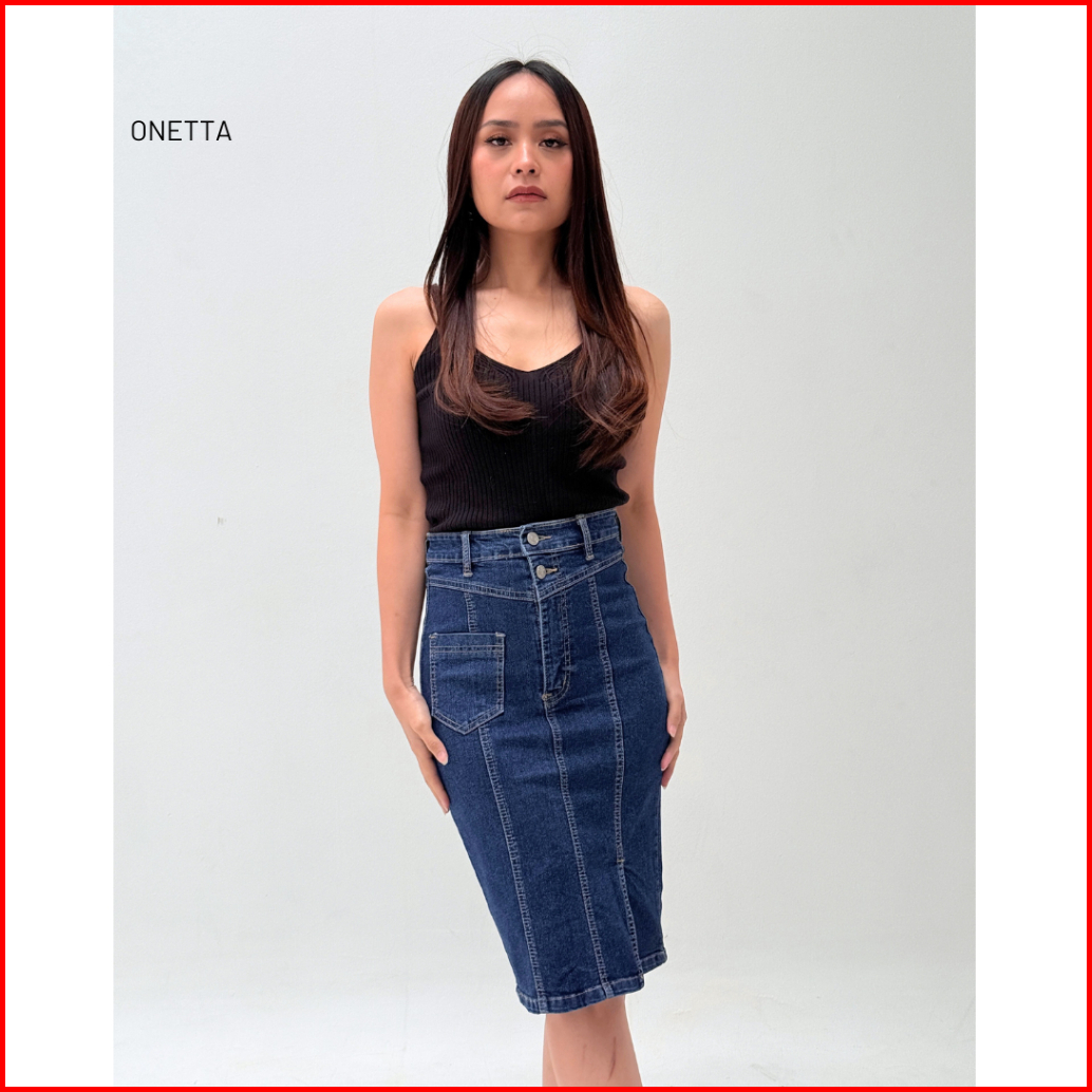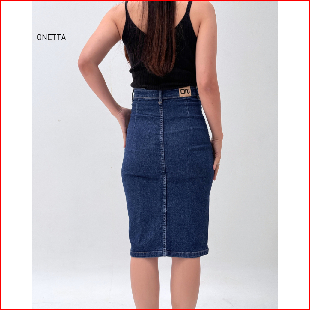 Onetta - Rok Jeans Wanita Span Pendek Semi Formal Berlyn Bio Blue