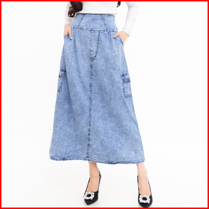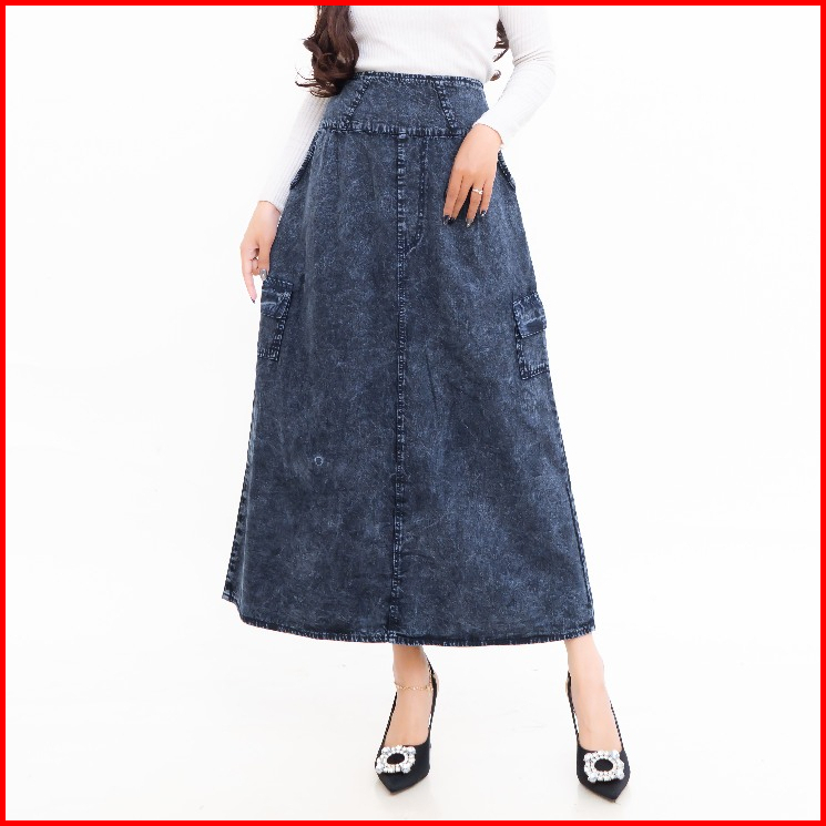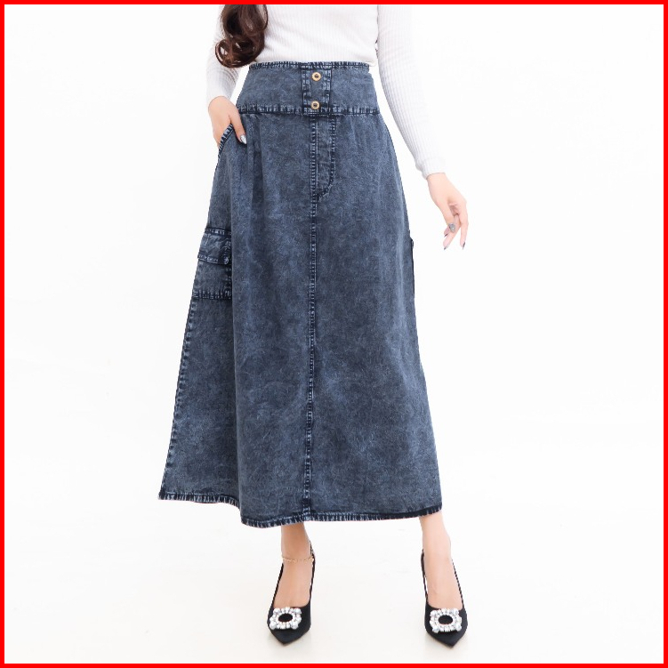 Molding - Rok Span Jeans Cargo Model Polos Dan Kancing