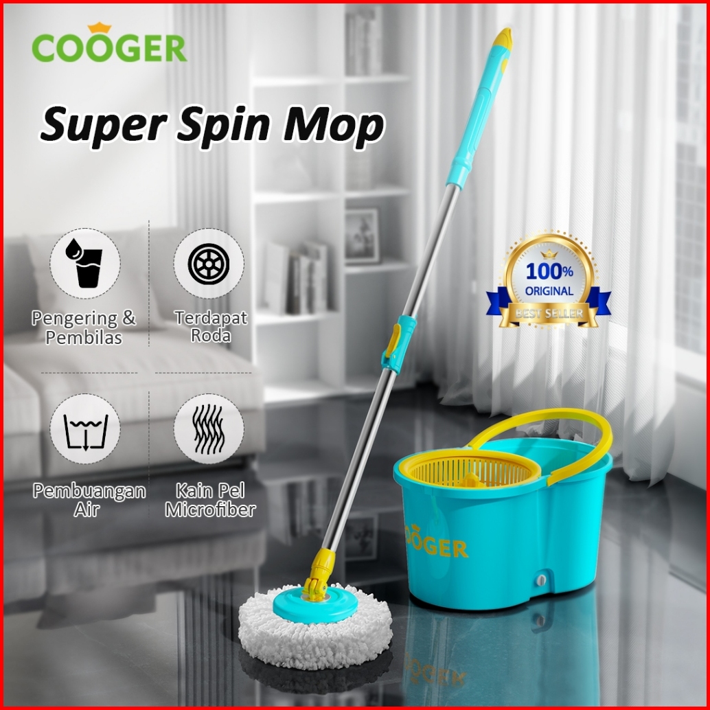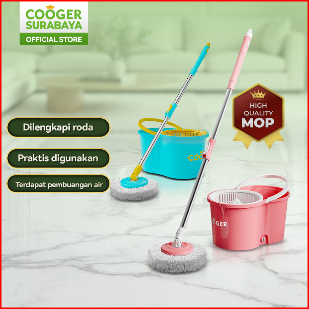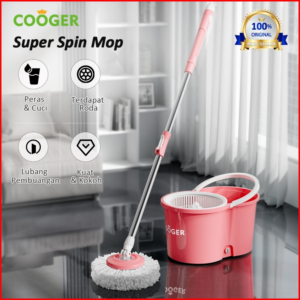 Ready Surabaya Cooger Alat Pel Bucket Spin Mop Multifungsi Pel Lantai Putar Automatic Serbaguna