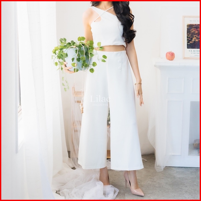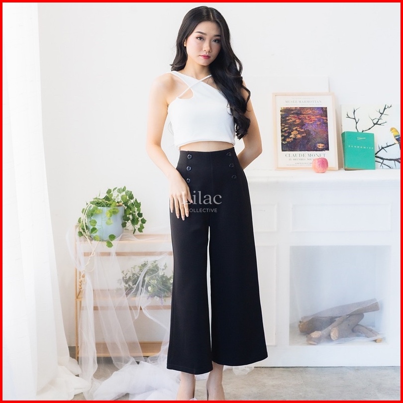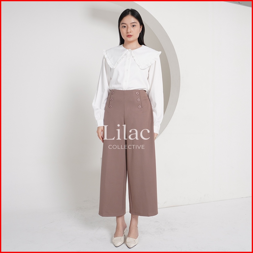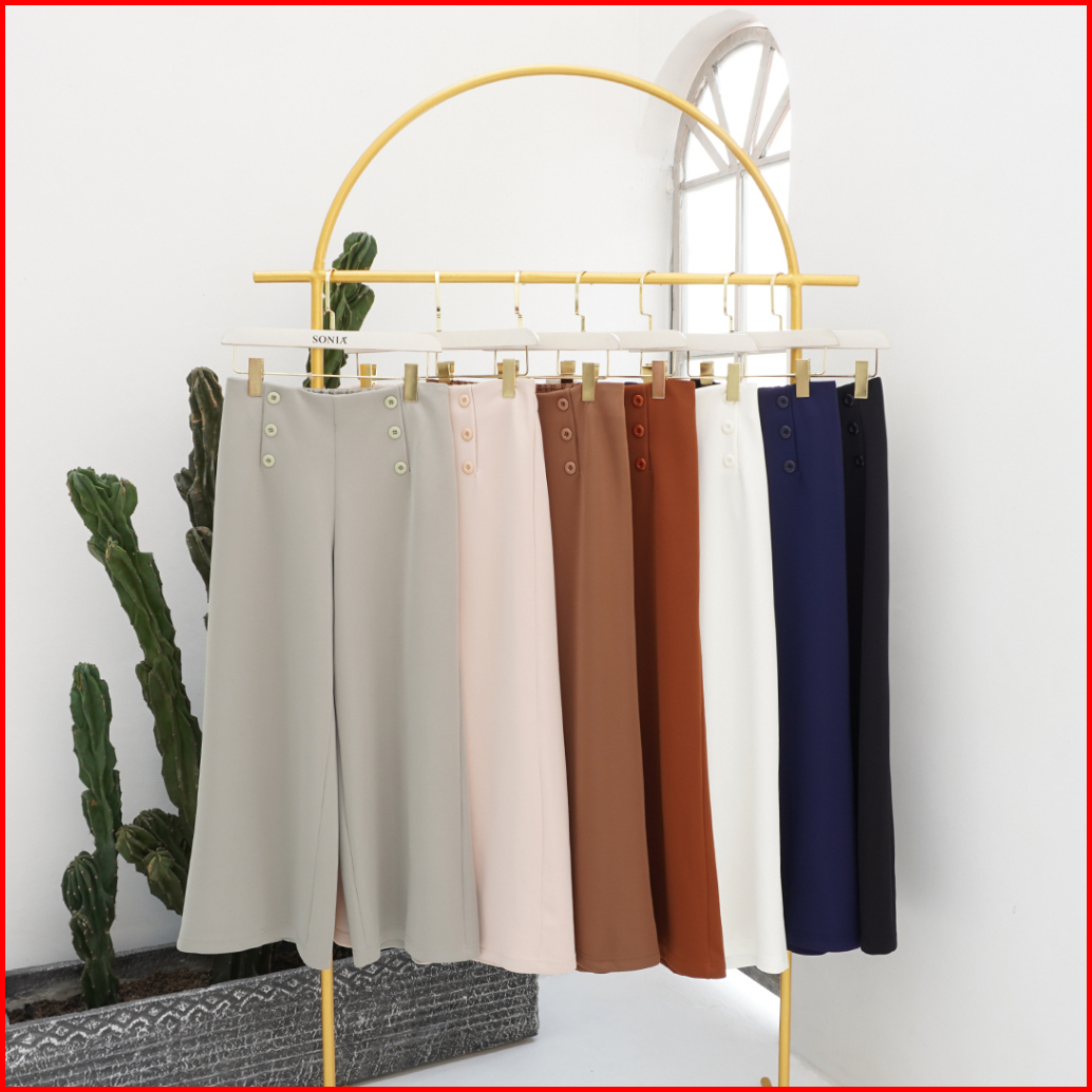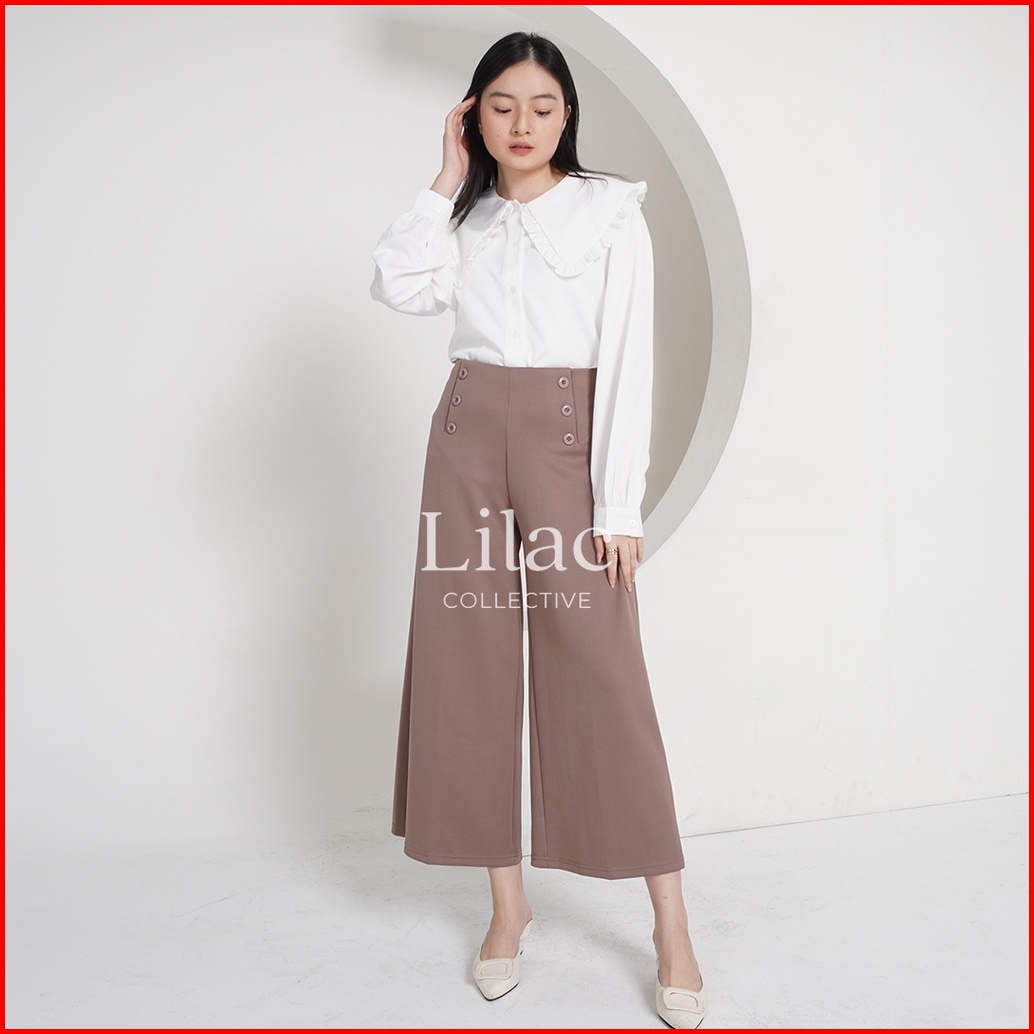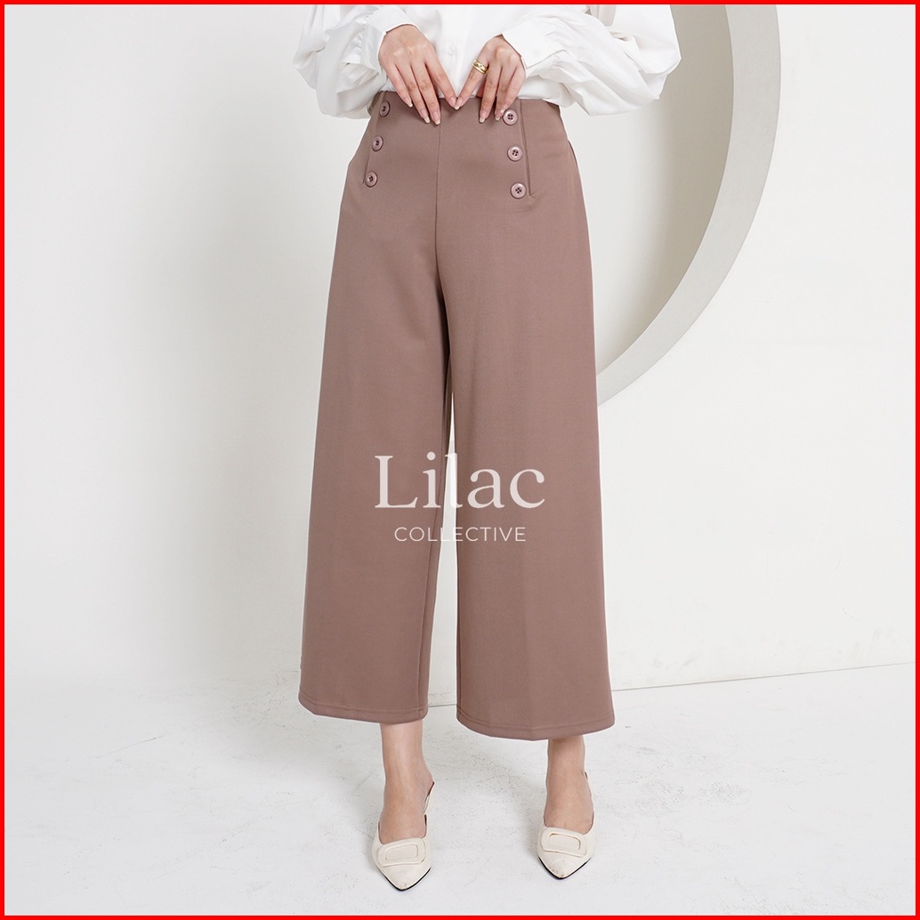 Yu-mi Basic Kulot Kancing By Lilac C1784 Kulot Highwaist Scuba Premium Office Pants Kulot Basic Korea Celana Kulot Panja