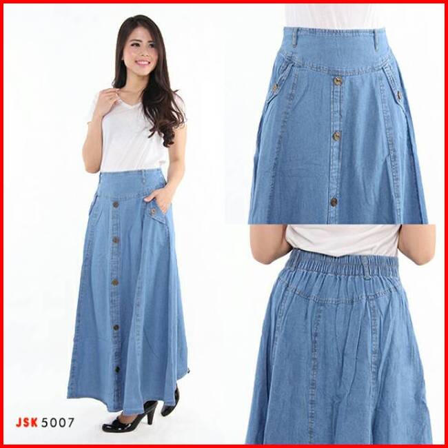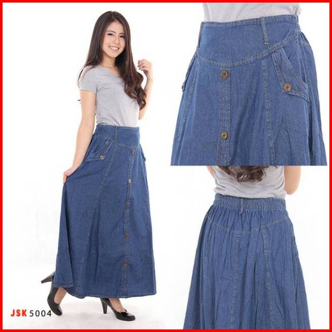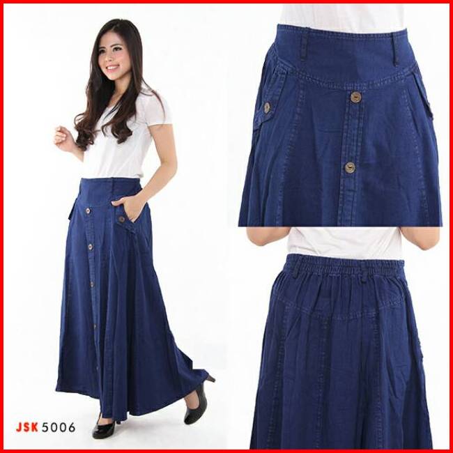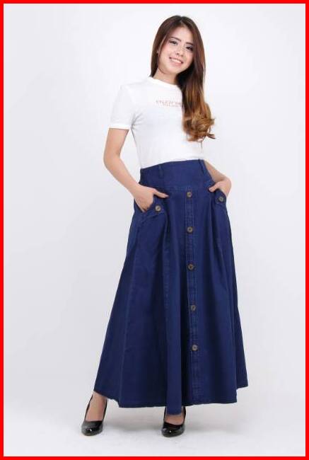 4 Warna Rok Panjang Jeans Wanita Model Mekar Rok Muslimah Rok Kerja Kuliah Wanita