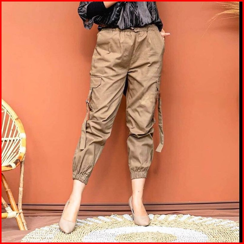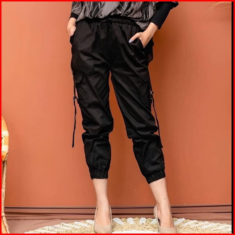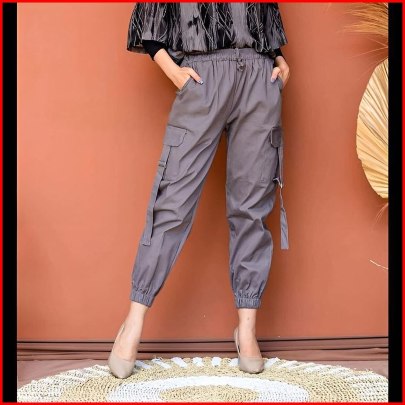 Celana Cargo Jogger Wanita Jumbo Bahan Twill Combed Melar