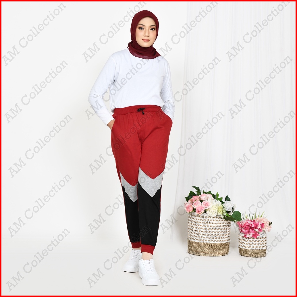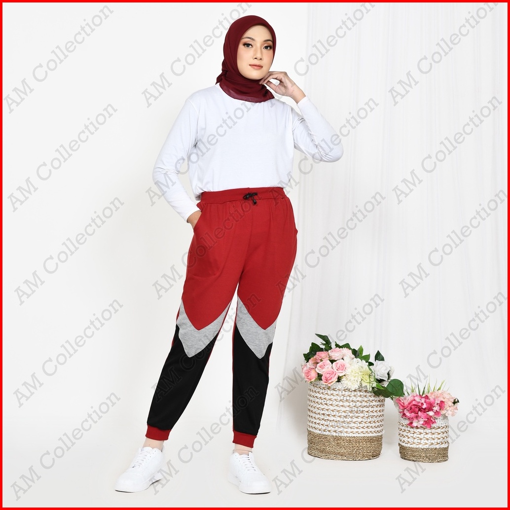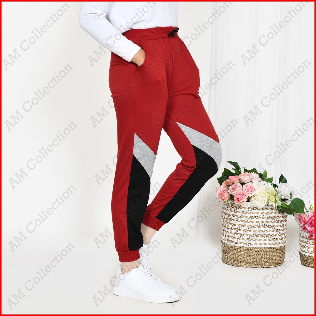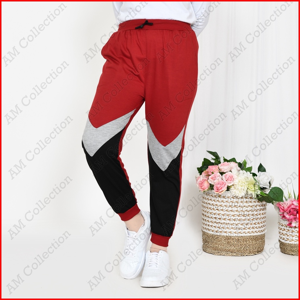 Celana Joger Training Wanita Premium Kombinasi Celana Jogger Babyterry Cewe Training Olah Raga Standar Dan Jumbo