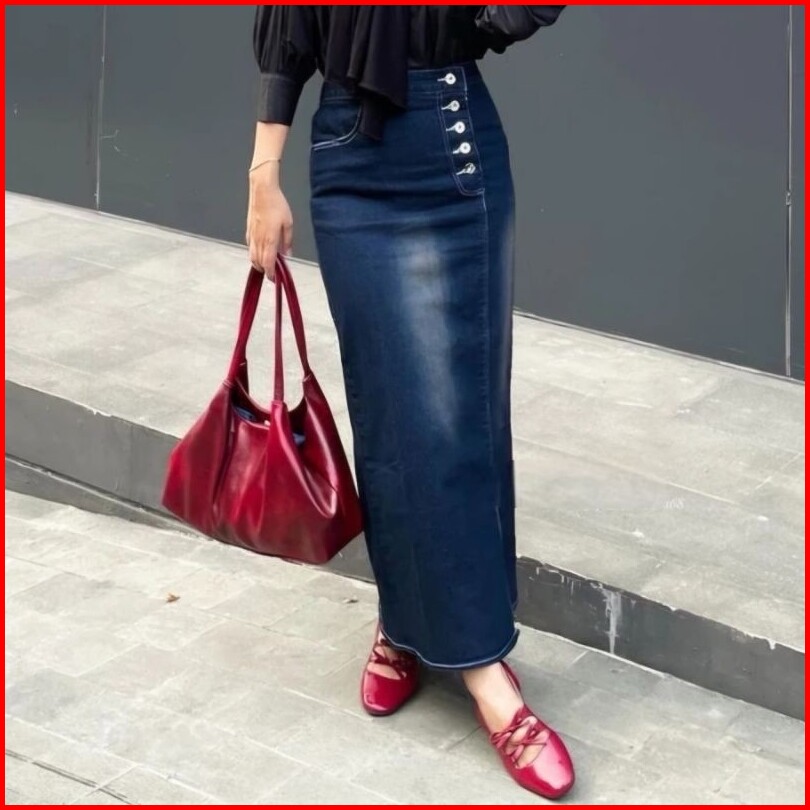 Queeny - Highwaist Rok Jeans Theana Skirt Panjang