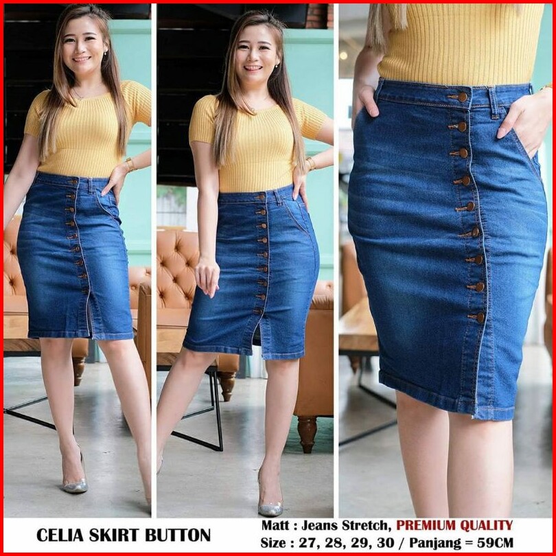 Rok Wanita Celia Skirt Button Rok Jeans Cewek Jumbo