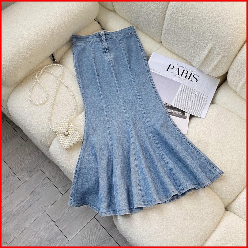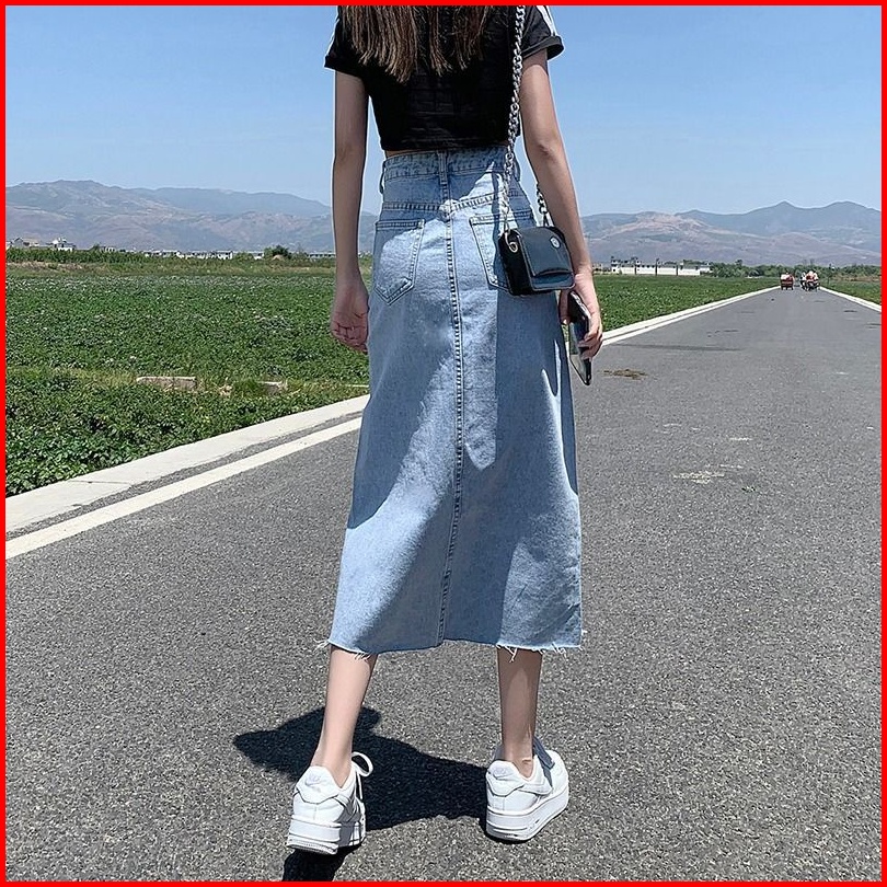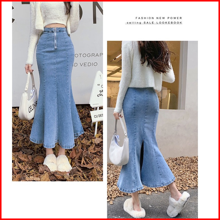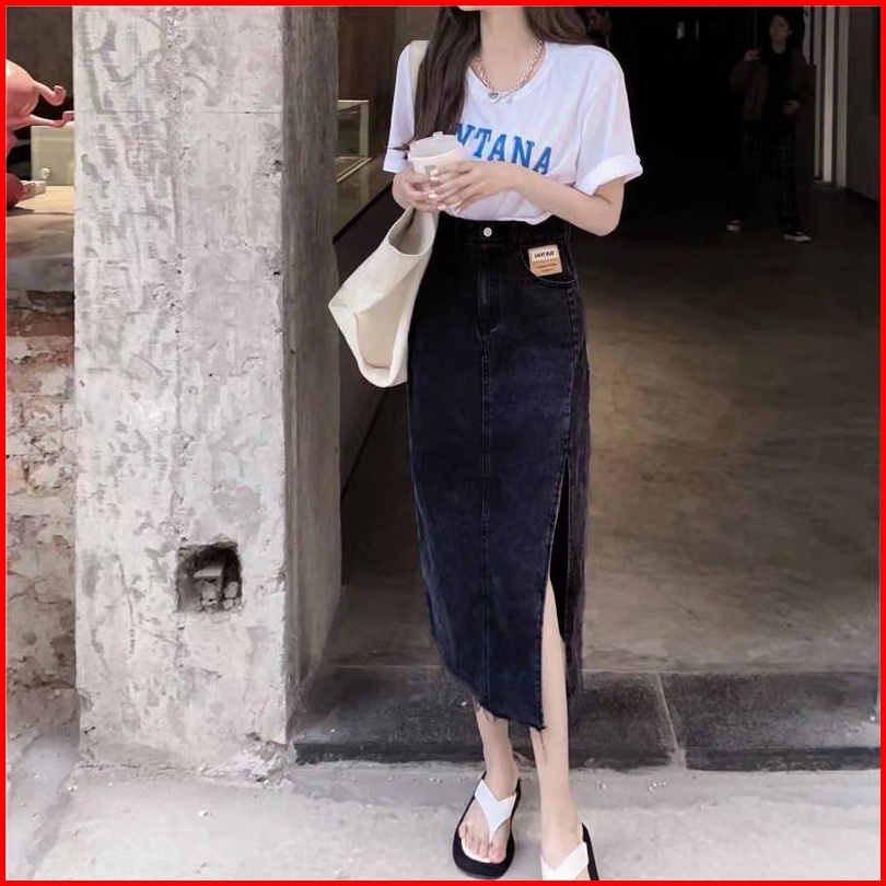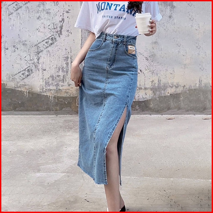 Rok Jeans Wanita Slit Skirt Panjang Fashion Korean Style High Waist Denim 2024 Terbaru Ootd Kekinian