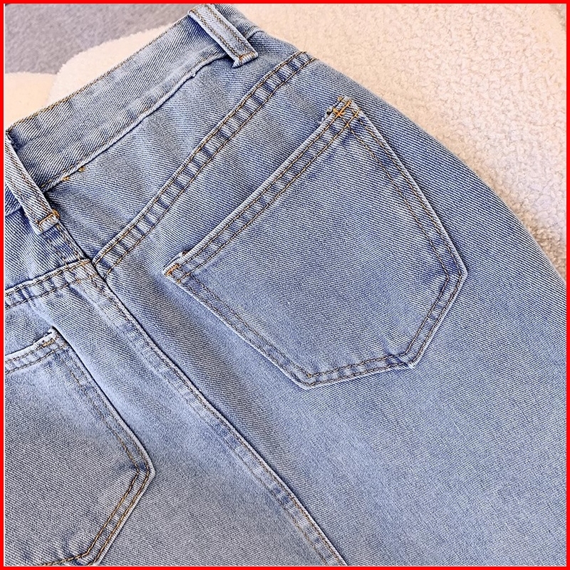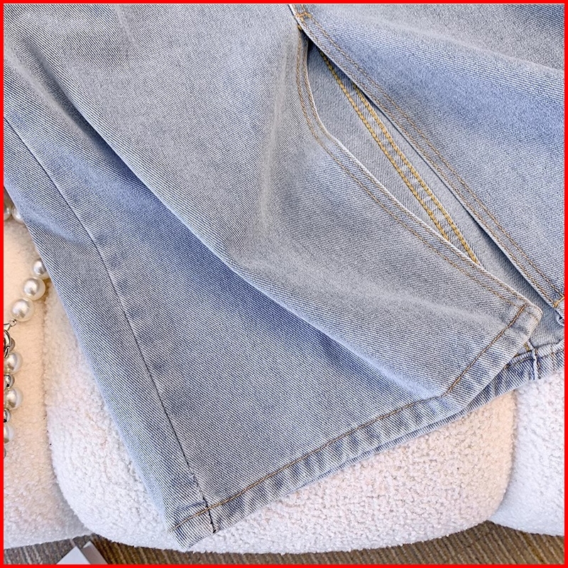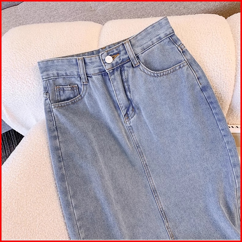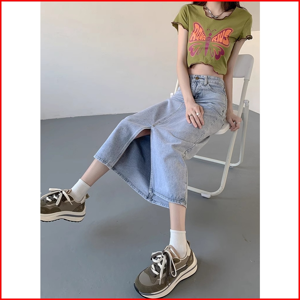Luck Wanitabiru Muda Belahan Depan Rok Jeans Highwaist A-line Rok Jeans Wanita Polos