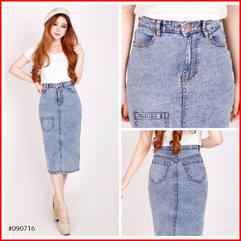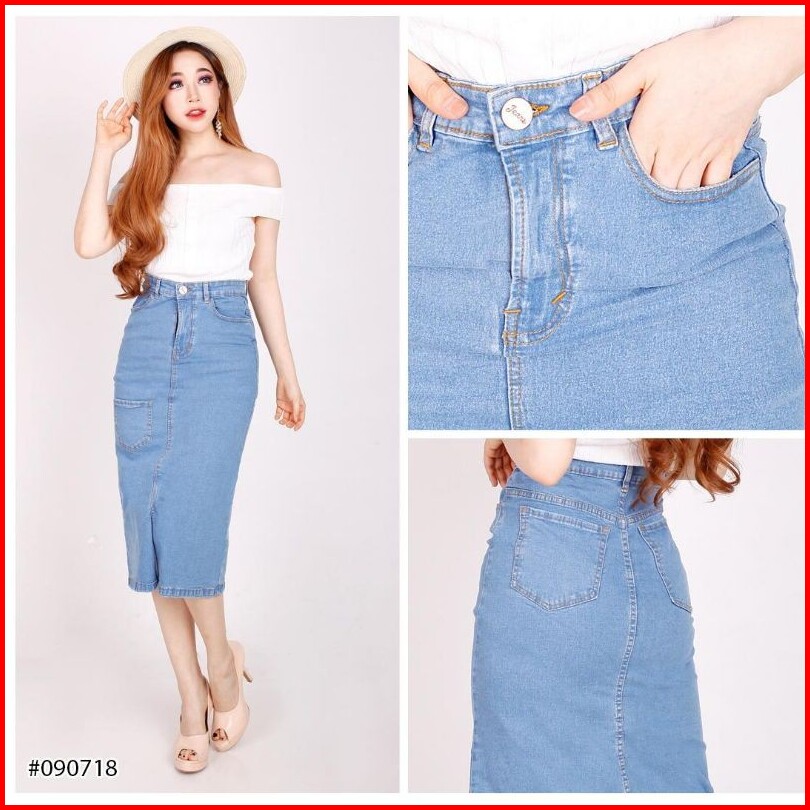 Rok Span Belah Depan Rok Jeans Rok Jeans Premium Rok Span Midi Korean Skirt