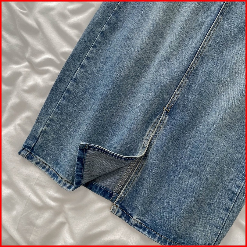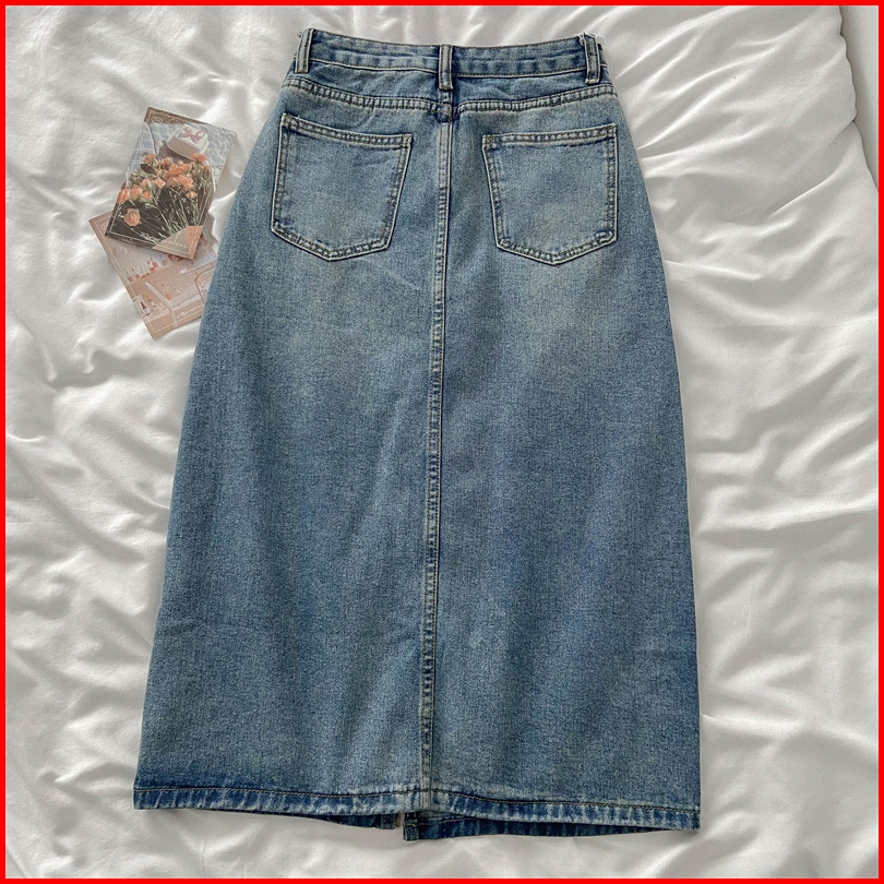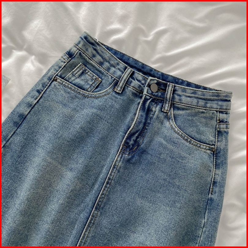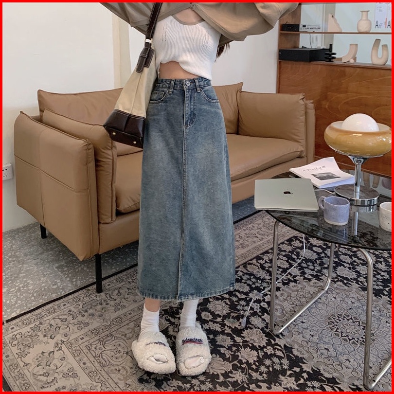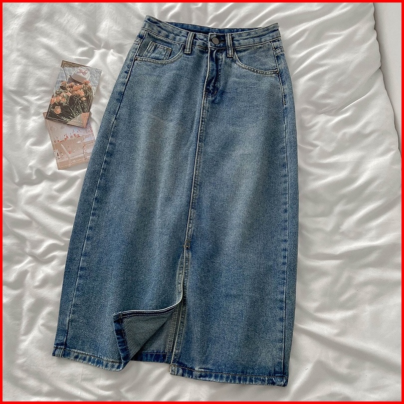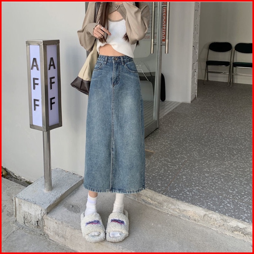 Korean High Waist Rok Jeans A-line Depan Split Jeans Kekinian