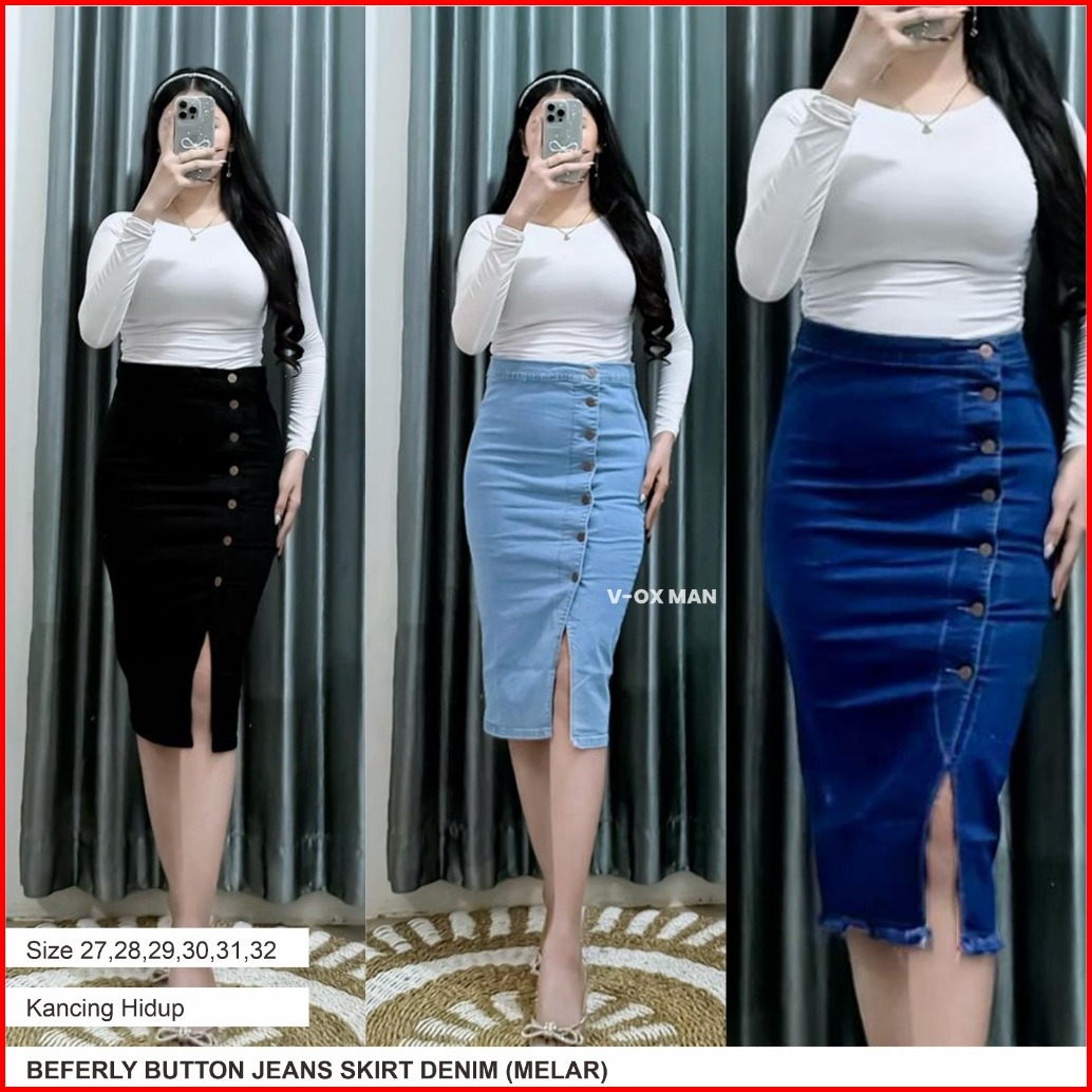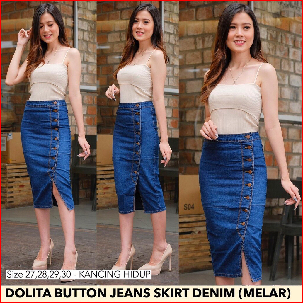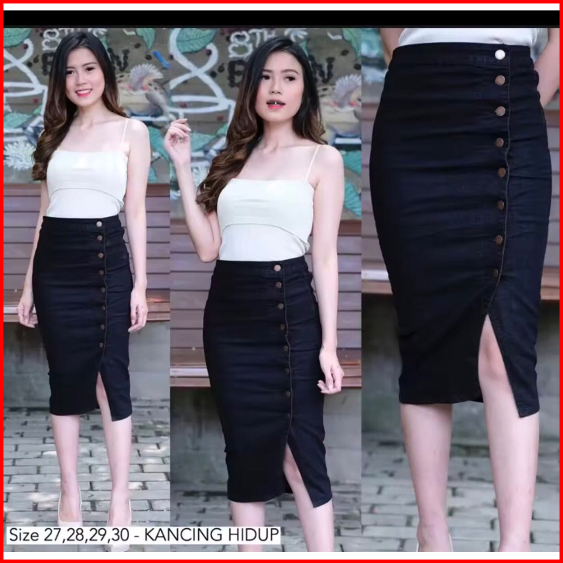 Ready Rok Hitam Dan Biru Kancing Black Dark Blue 27-30 Rok Jeans Wan