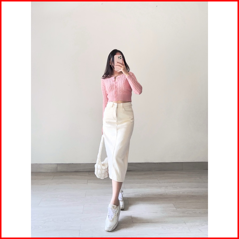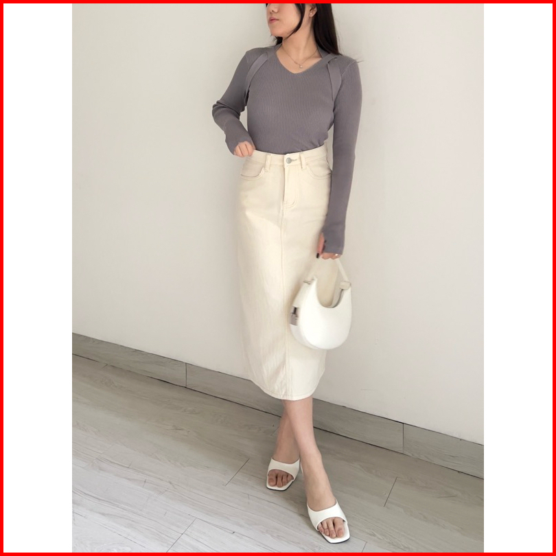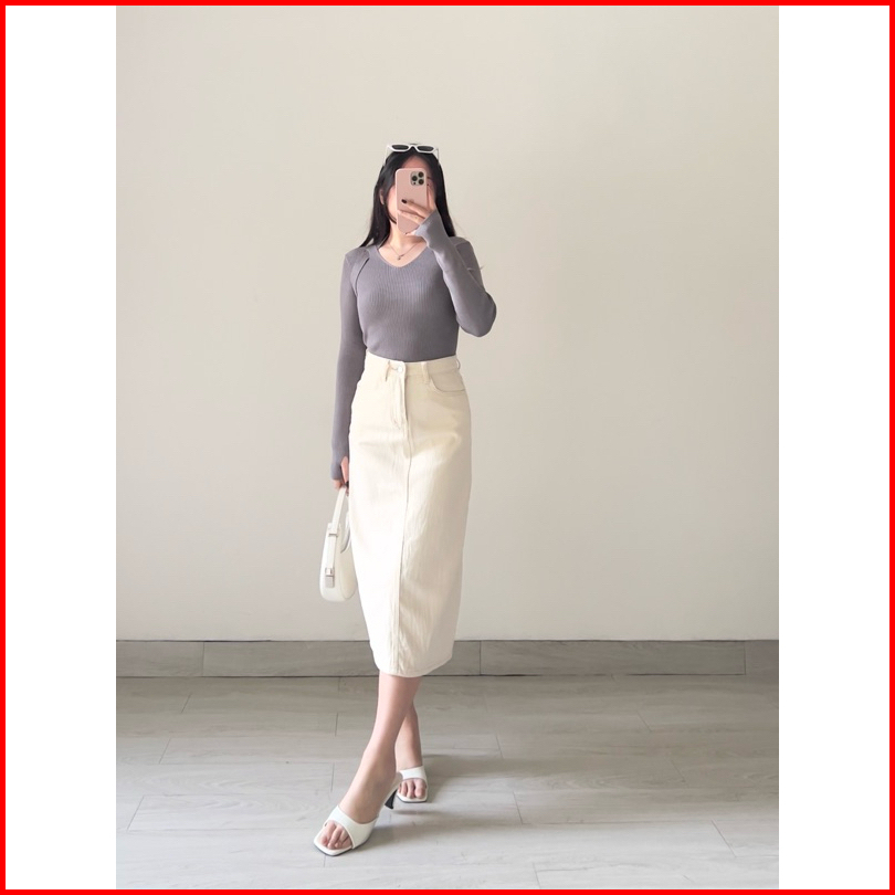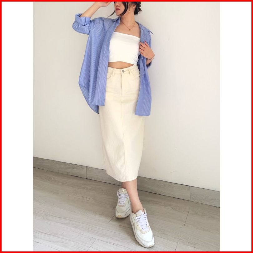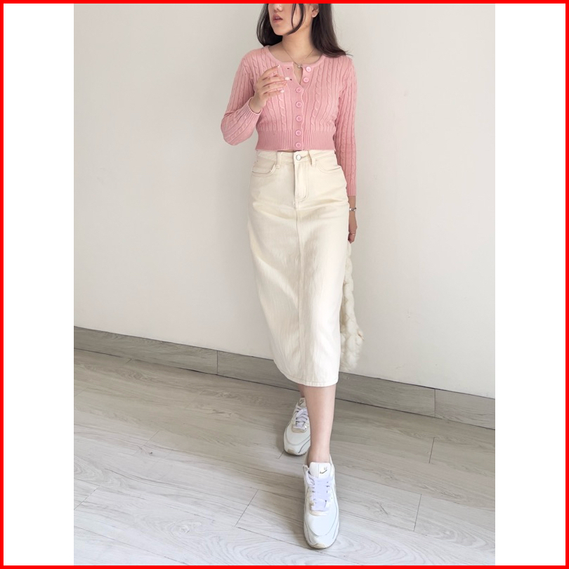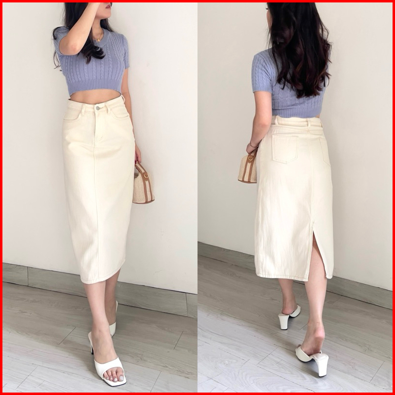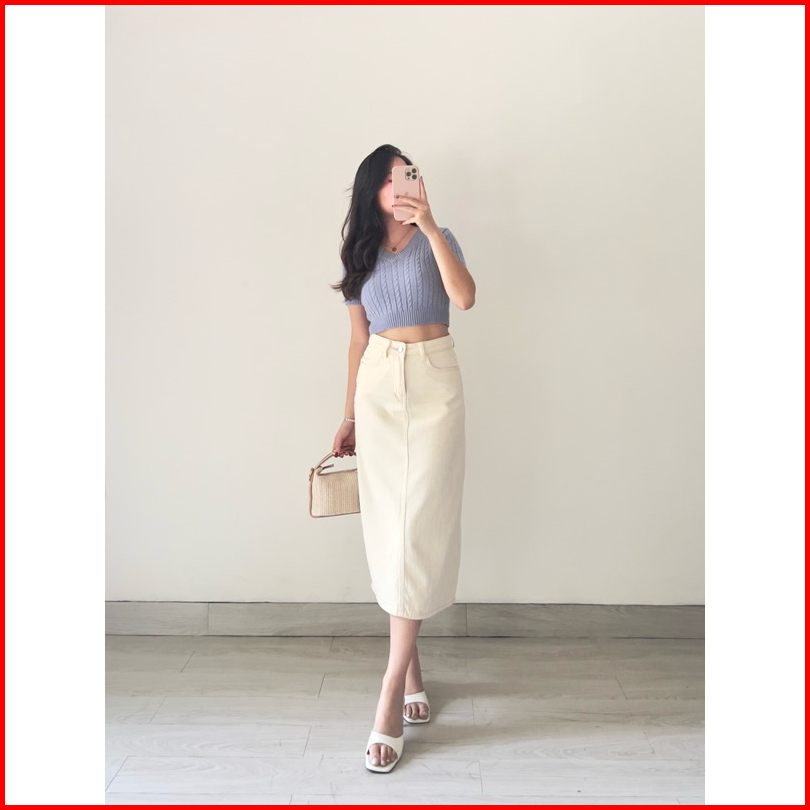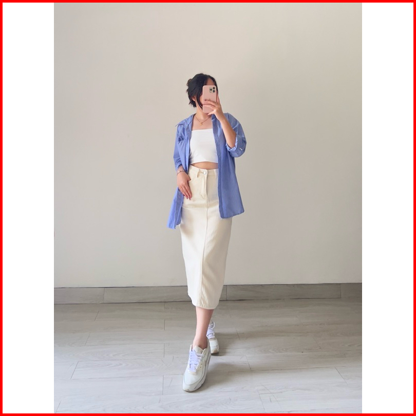 Klavee - Kelly Denim Skirt Rok Midi Denim Jeans Wanita Korean Style Kekinian