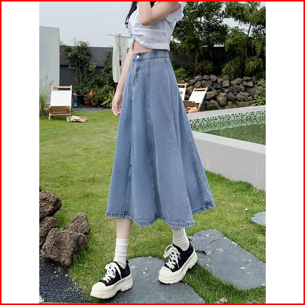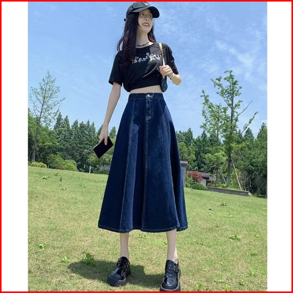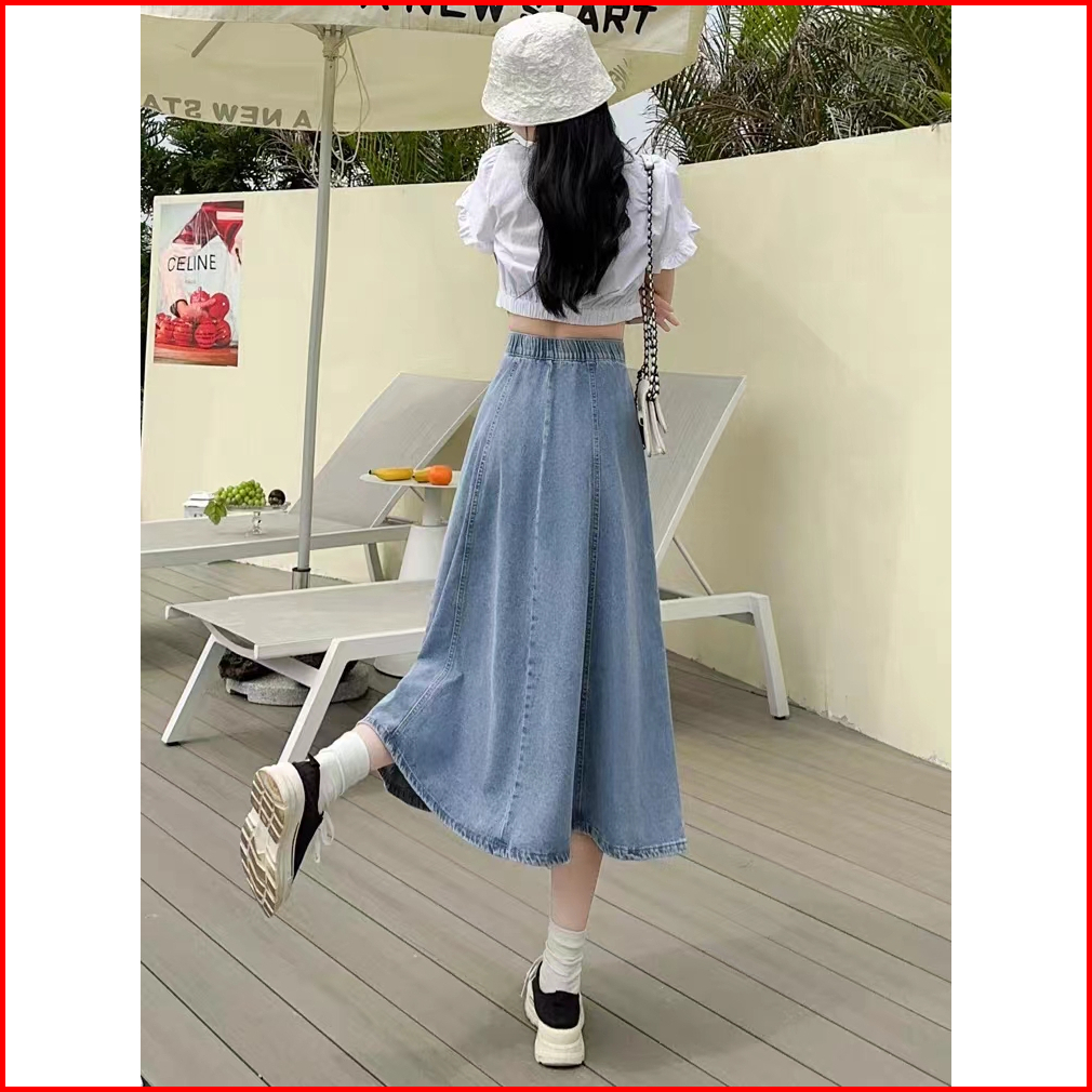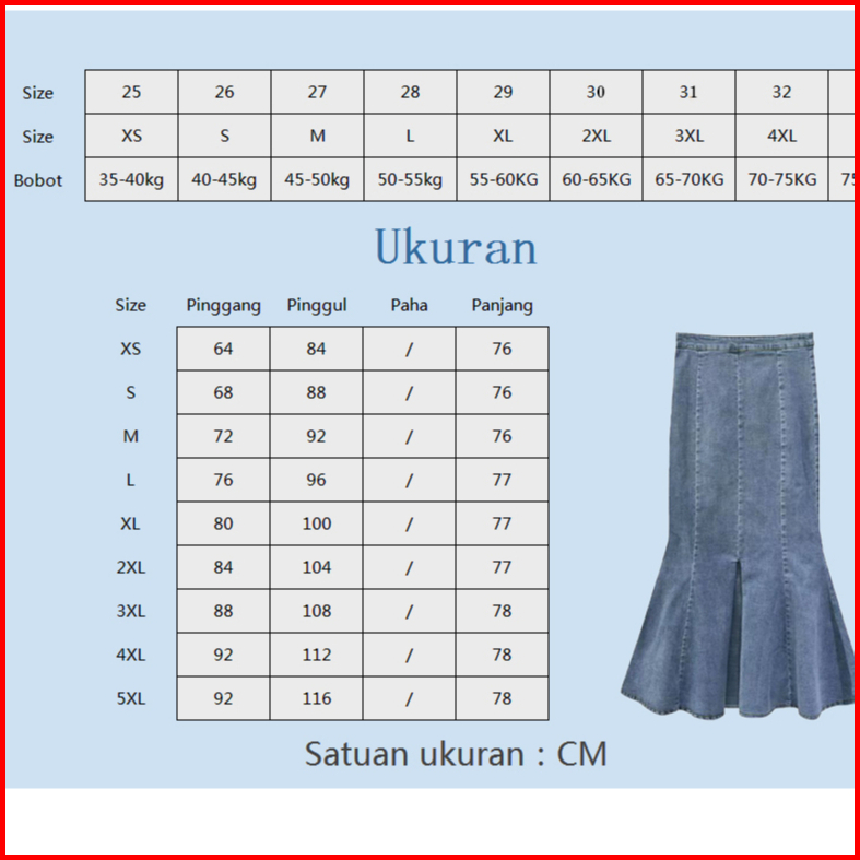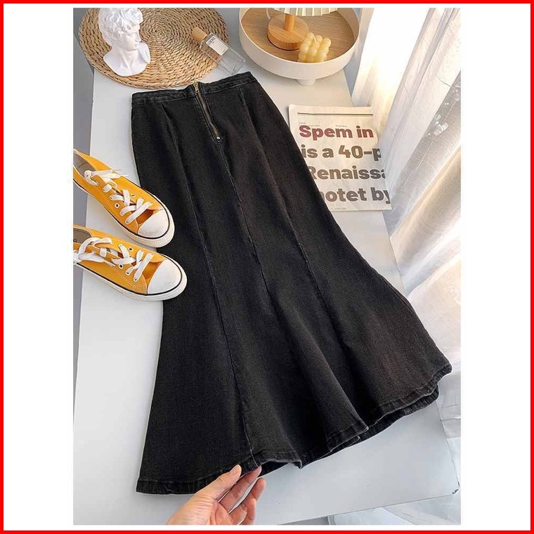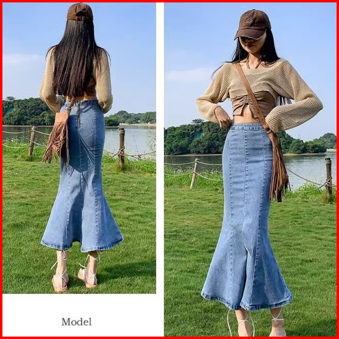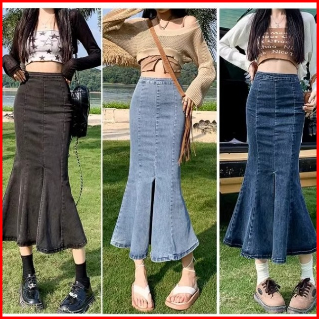 Rok Denim Panjang Rok Jeans Kekinian 2024 Rok Fishtail Stretch Rok Belah Samping Korean Style 7 8 Rok Span Jumbo Size