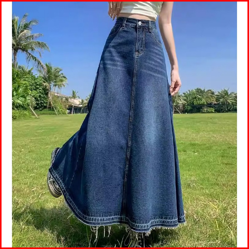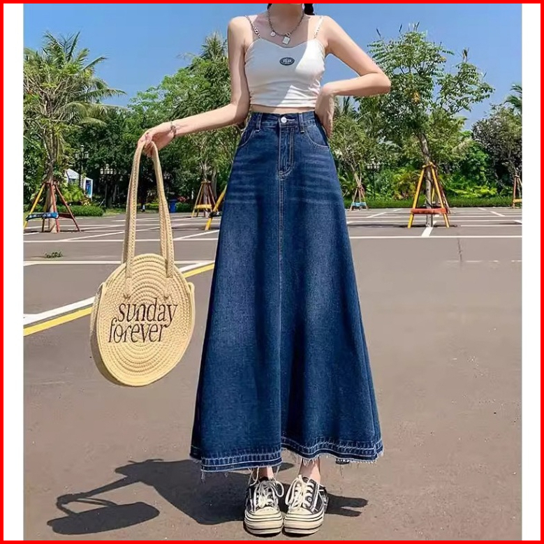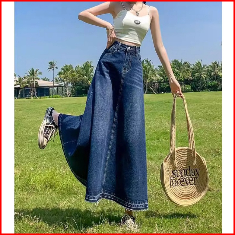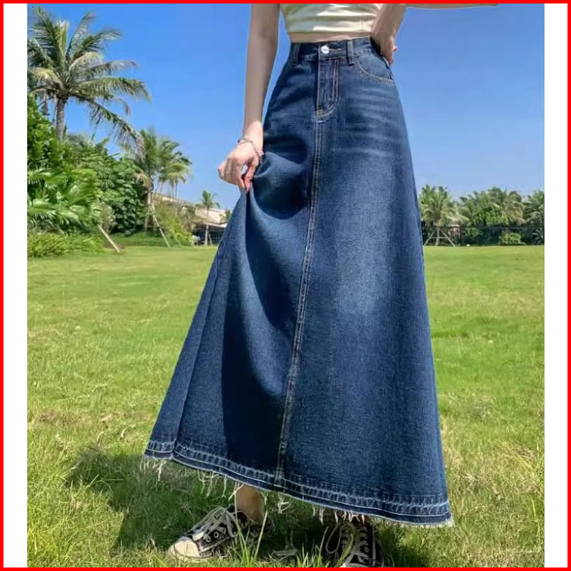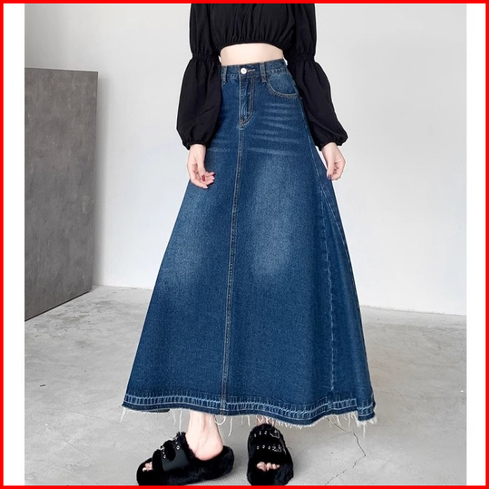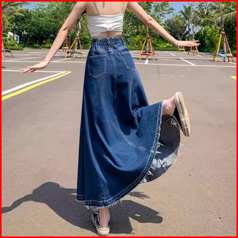 Bigsize Jumbo Rok Jenas Wanita Panjang Rok Jeans Korean Style Rok Denim Jumbo Highwaist Rok Jeans Wanita Pinggang Elasti