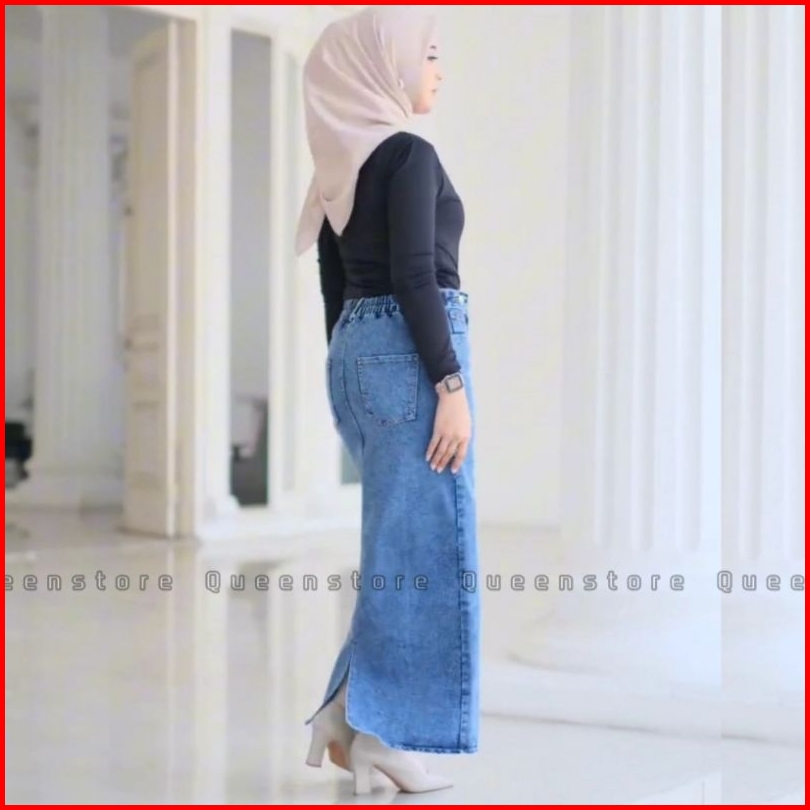 Rok Theana Jeans Belah Theana Rok Jeans Stretch Span Panjang Rok Denim Jeans Wanita Skirt Premium Terbaru