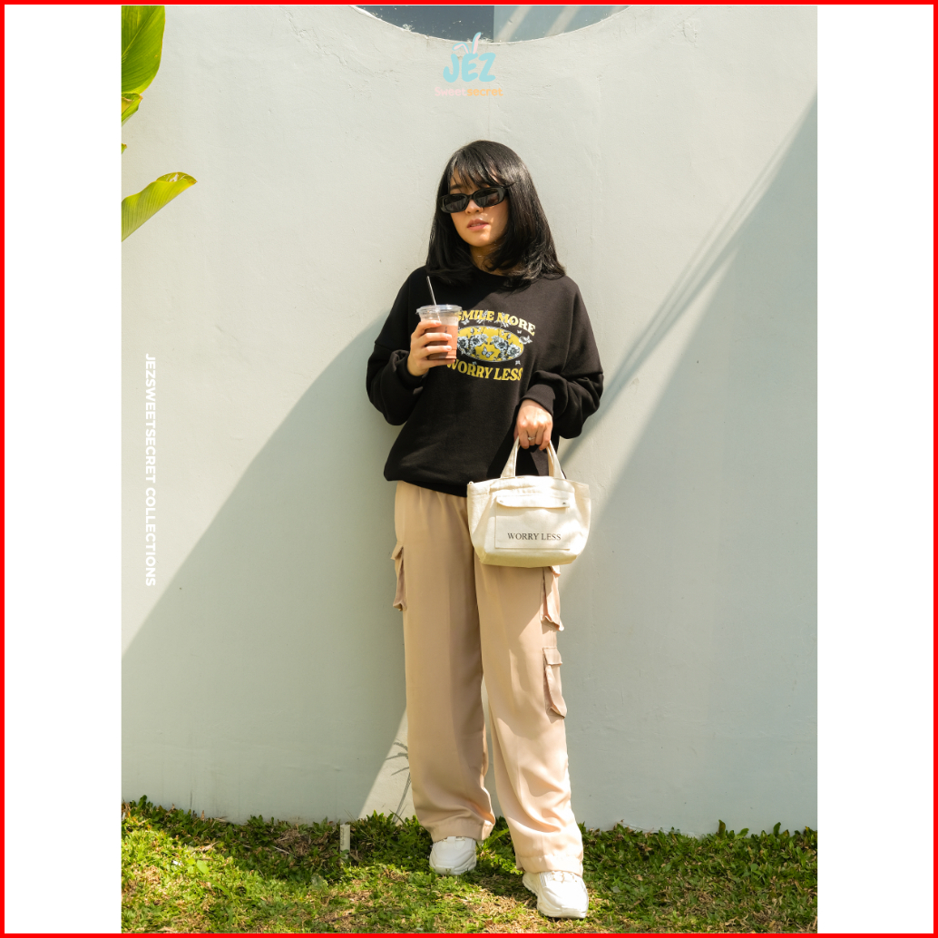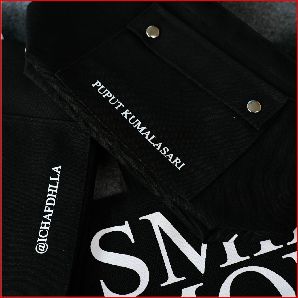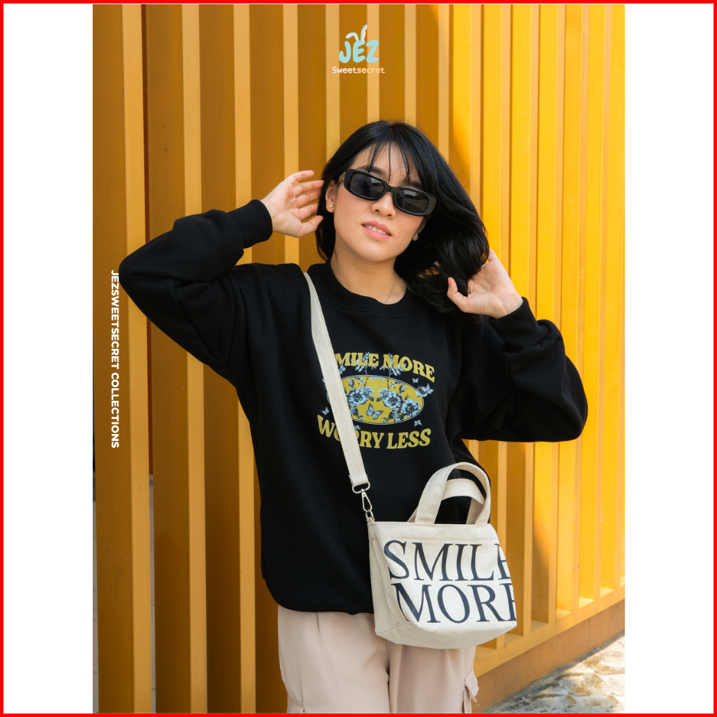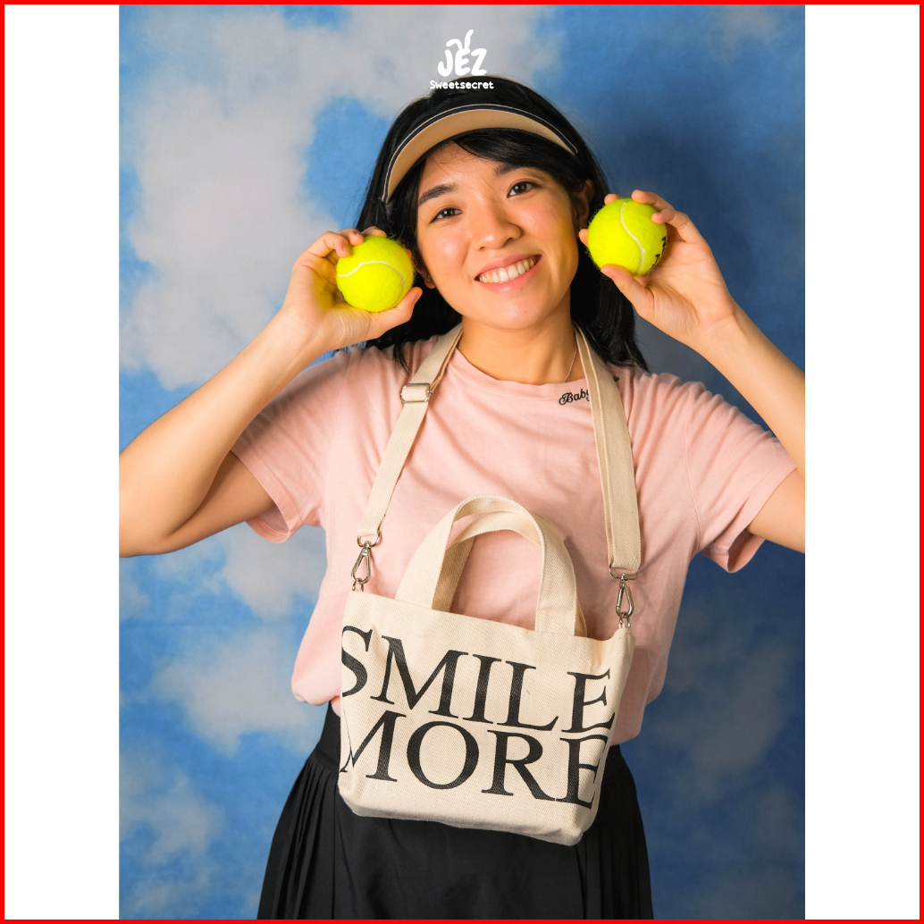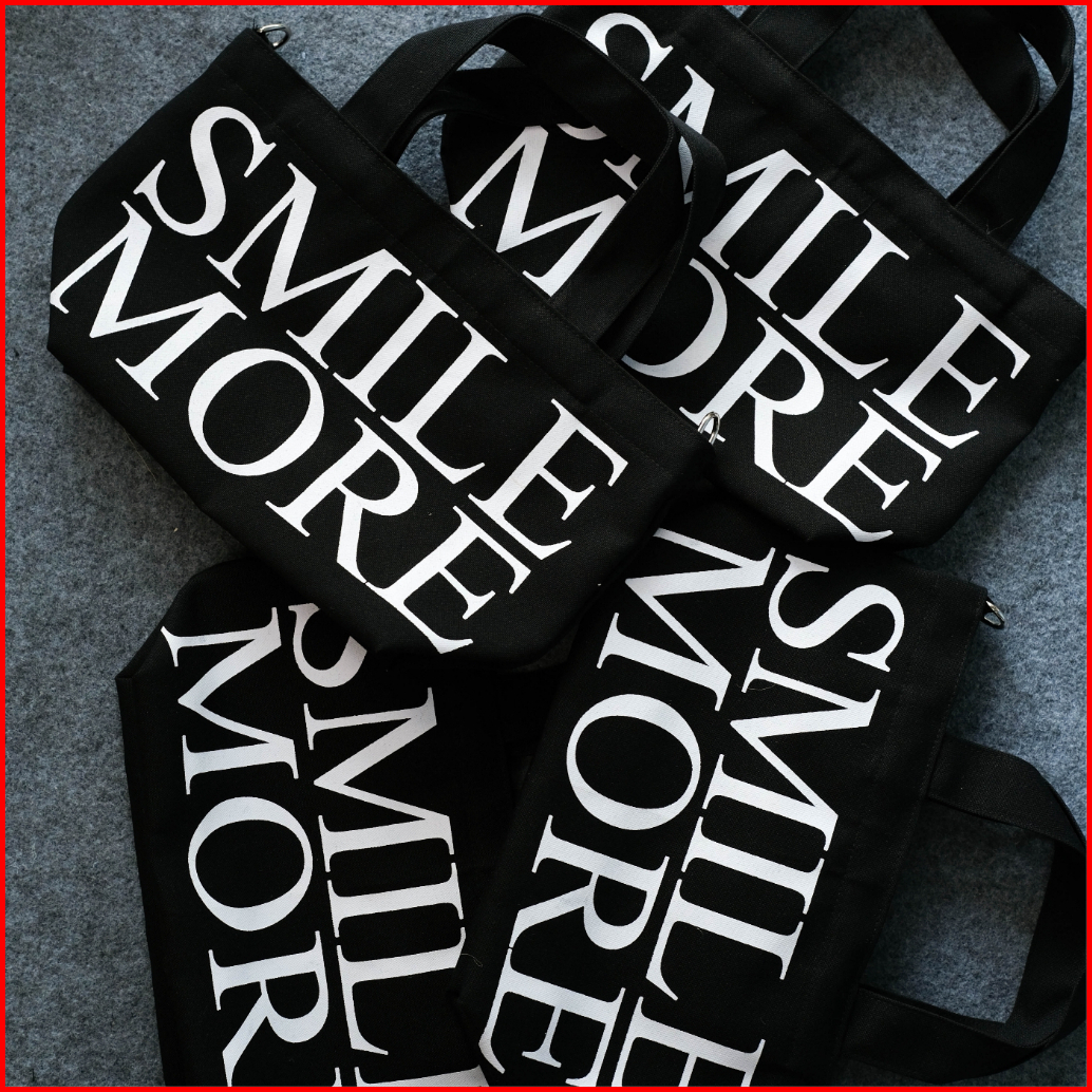 Smile More Totebag Wanita Bahan Kanvas Premium Tebal Zipper Resleting Gentle Woman Totebag Quote