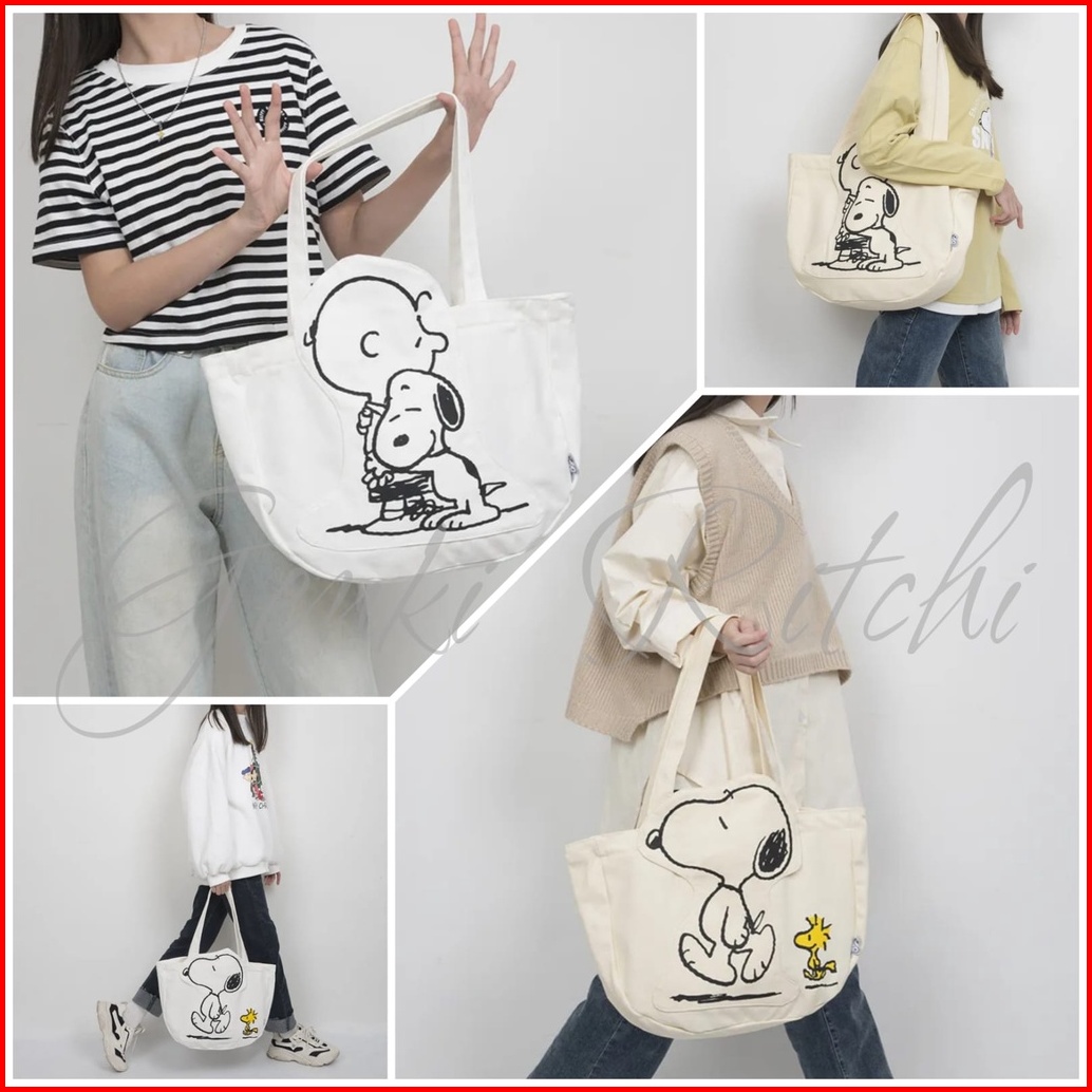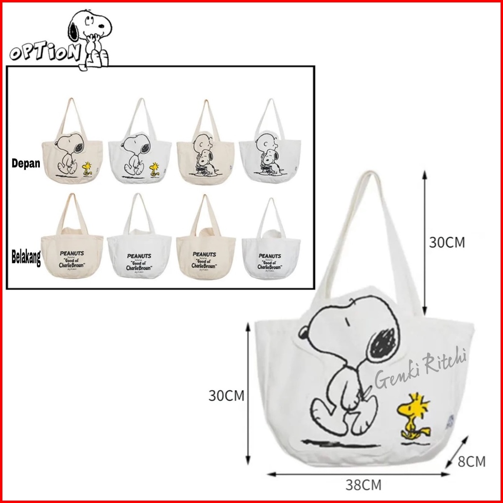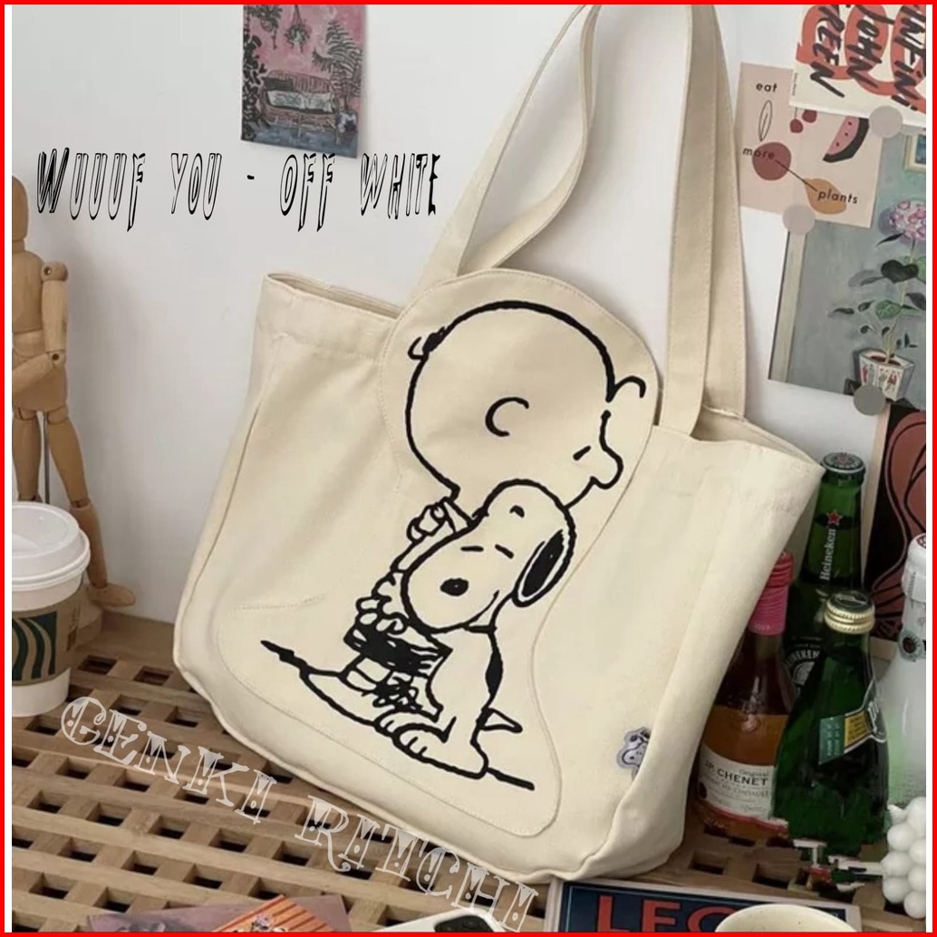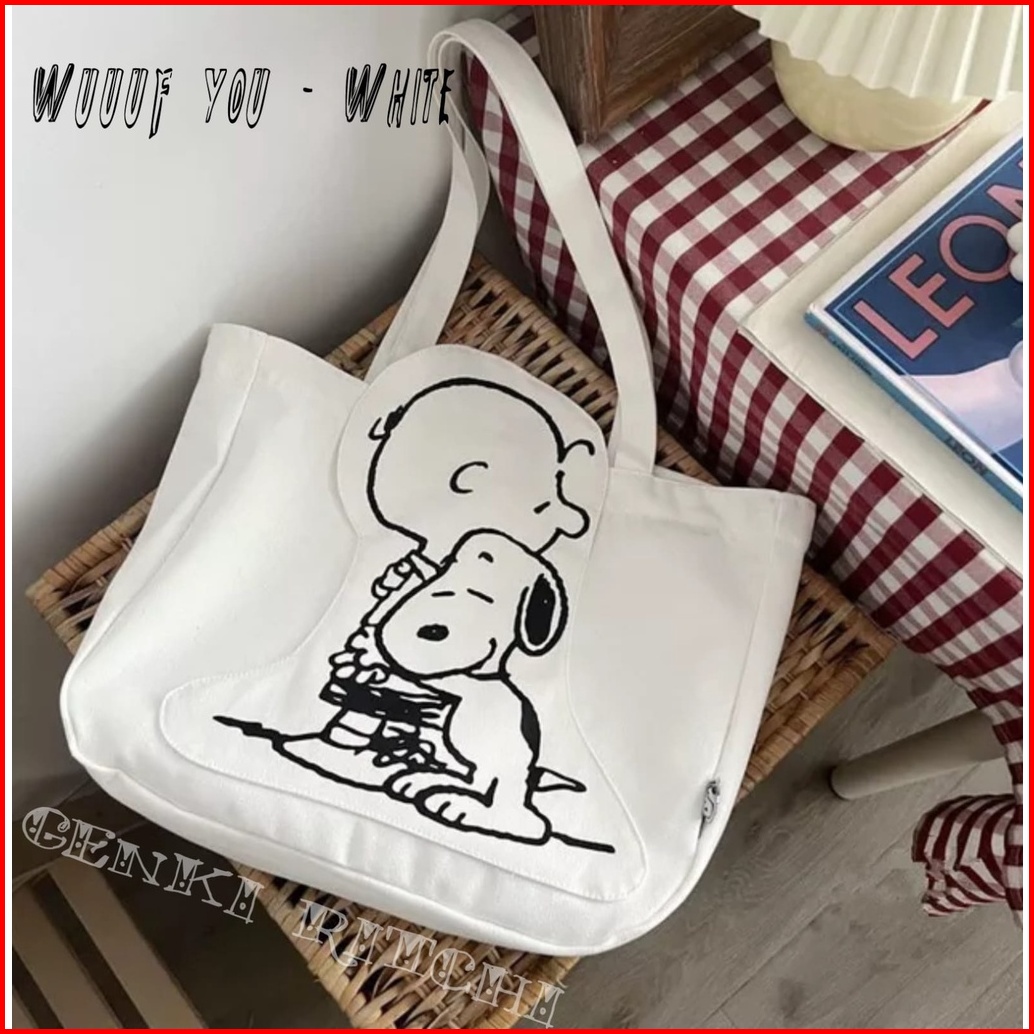 Tas Tote Bag Snoopy Peanuts Canvas Tas Pundak Selempang Wanita Kanvas