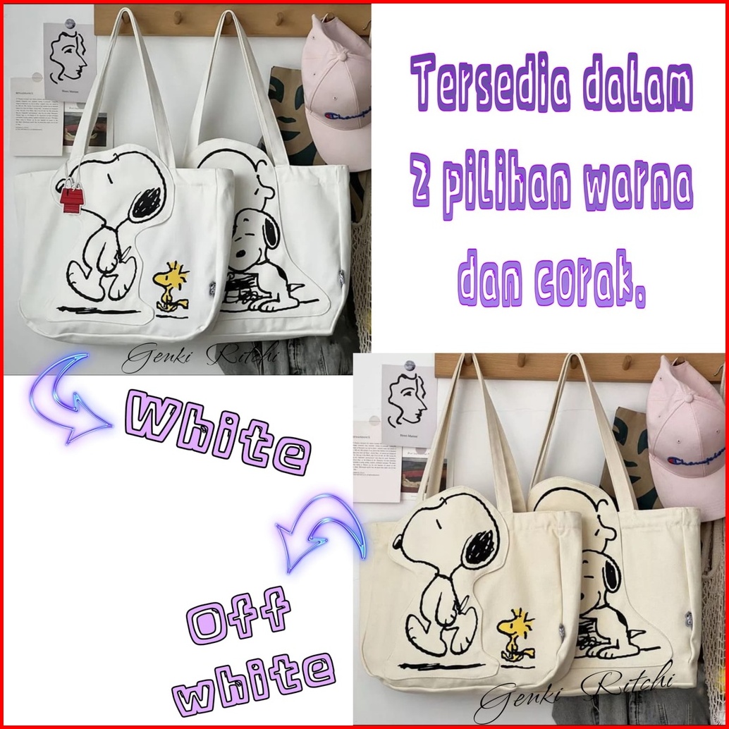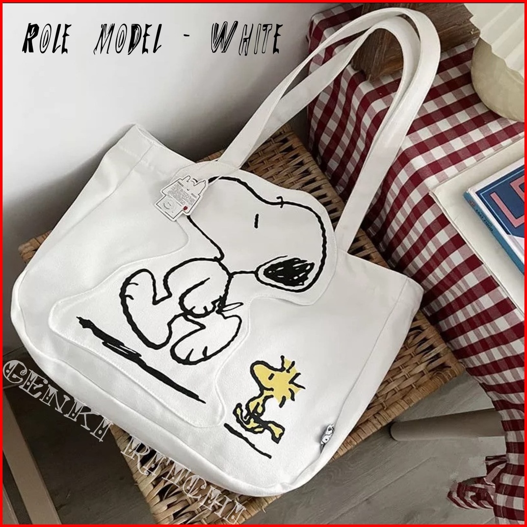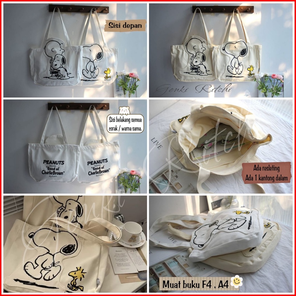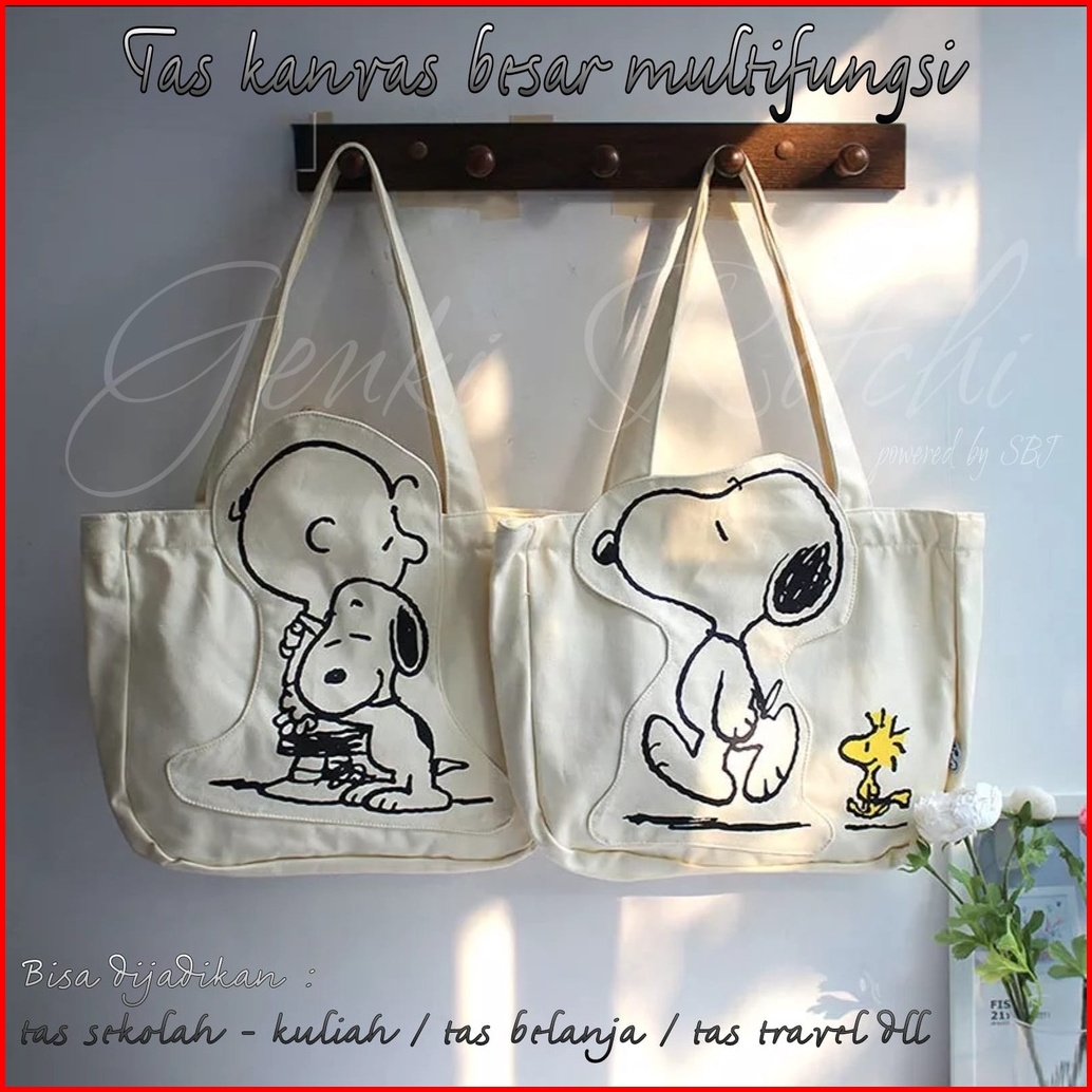 Tas Tote Bag Snoopy Peanuts Canvas Tas Pundak Selempang Wanita Kanvas
