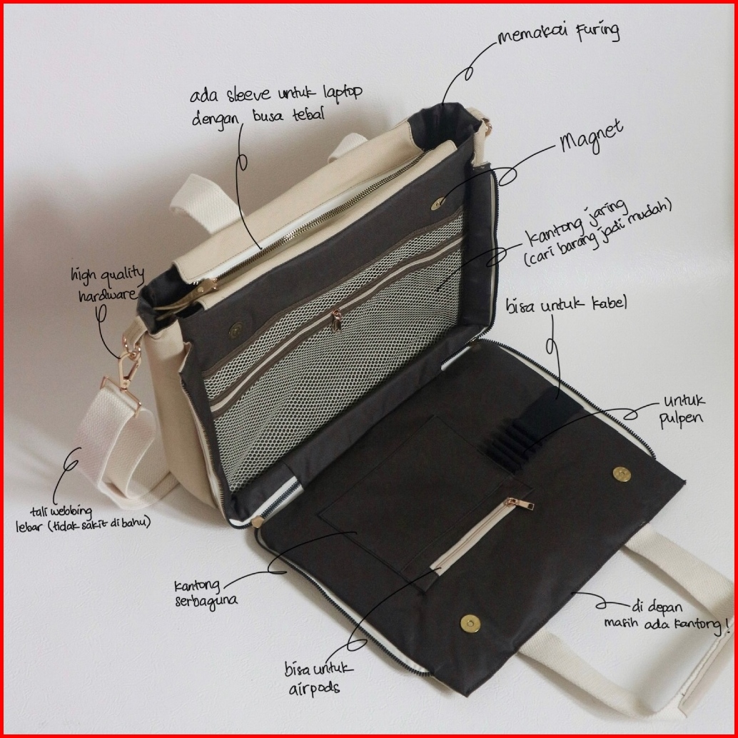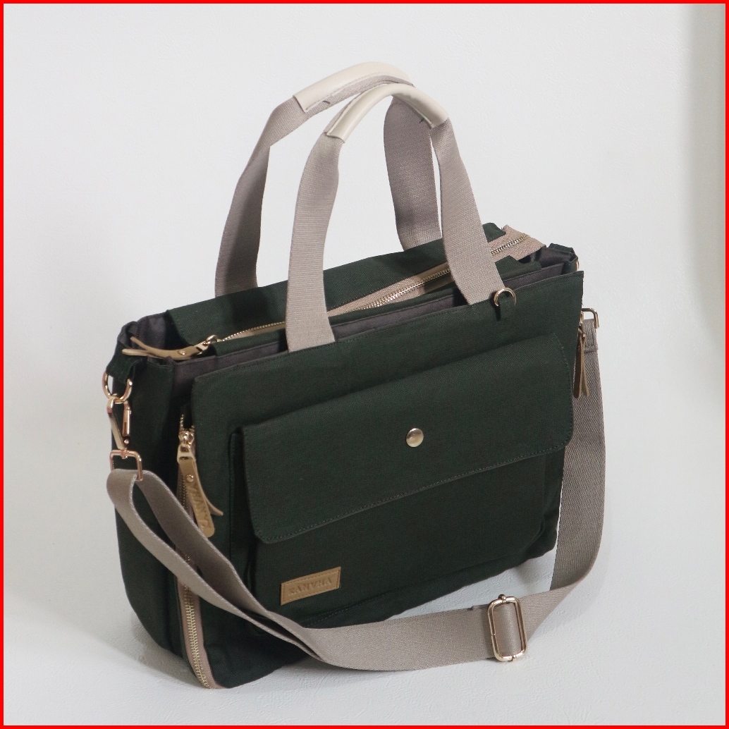 Solene Tas Kerja Kuliah Canvas Bag Laptop Workbag Slingbag Selempang
