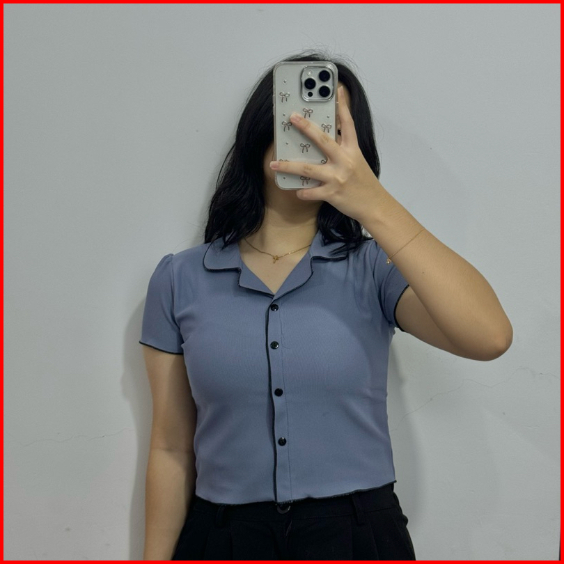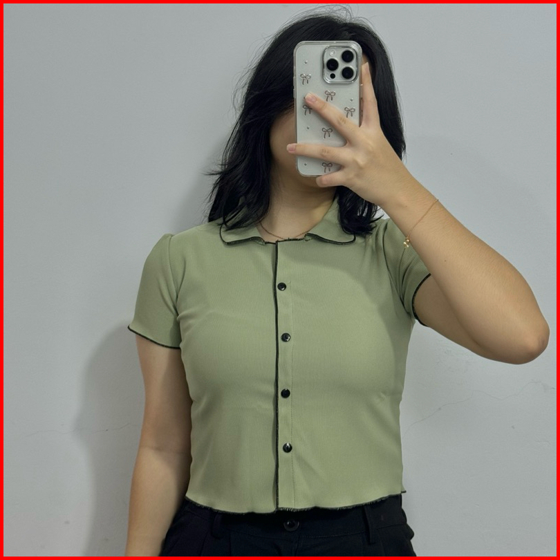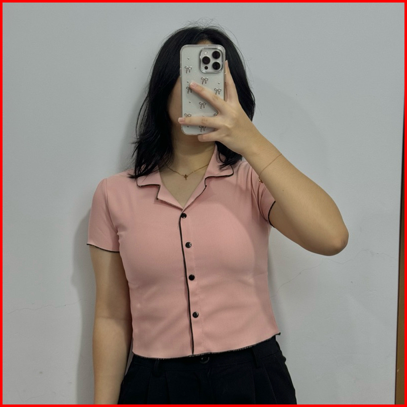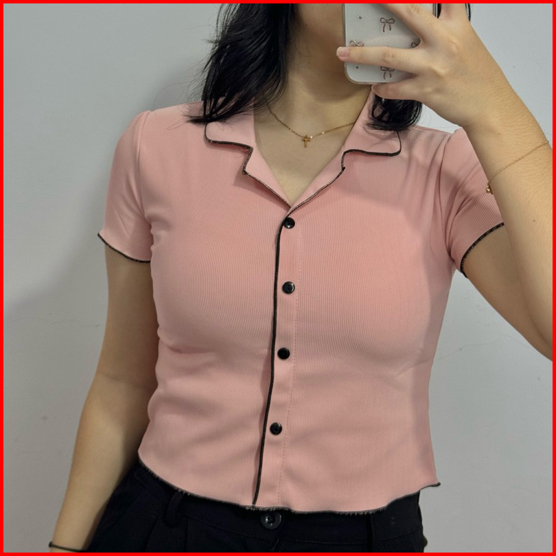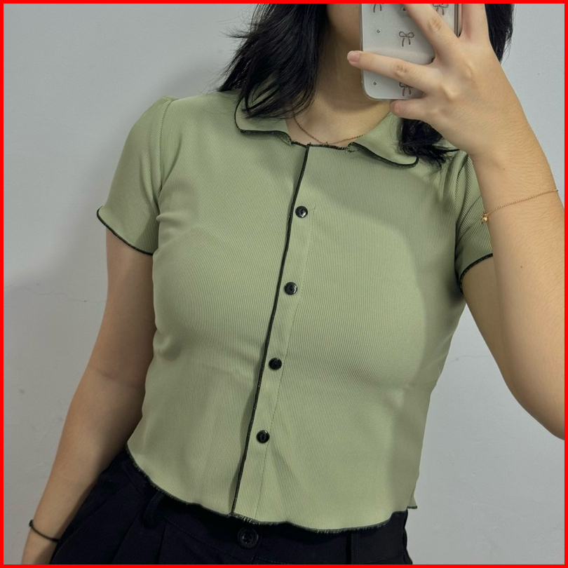Elizha Dahye Top - Kaos Polo Wanita - Baju Korean Style - Baju Berkerah Wanita - Polo Shirt Tops