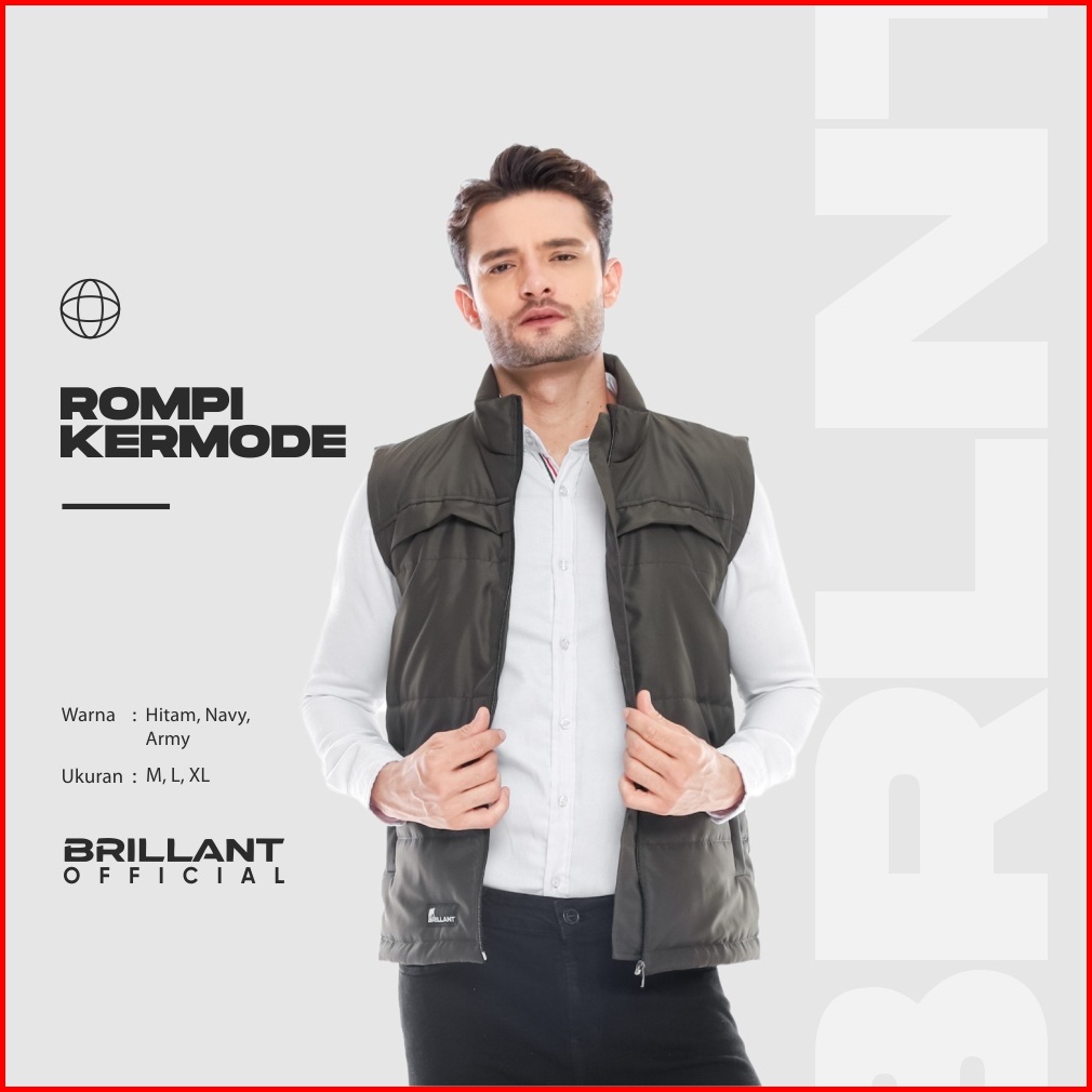 Brillant - Kermode Rompi Motor Pria Parasut M-xl Hitam - Navy - Army Vest Puffer Anti Angin