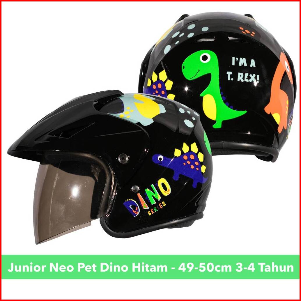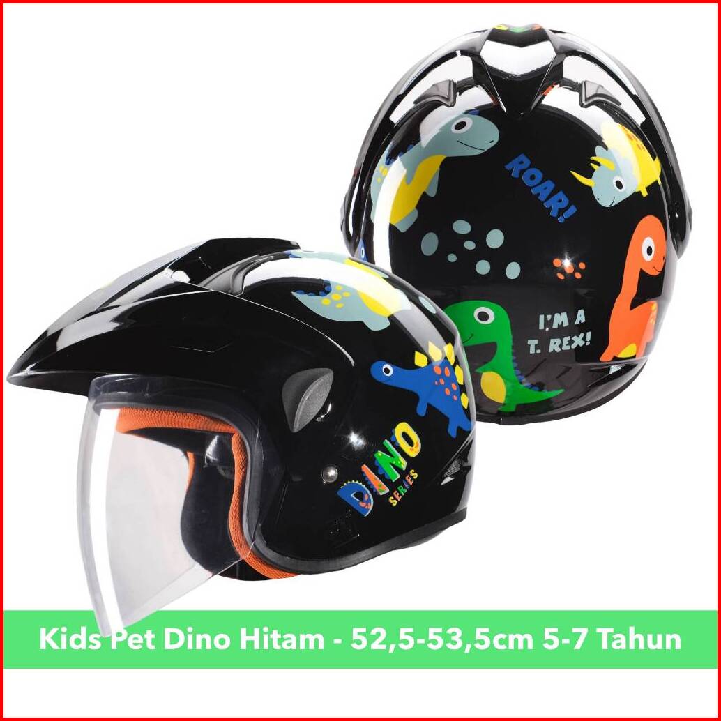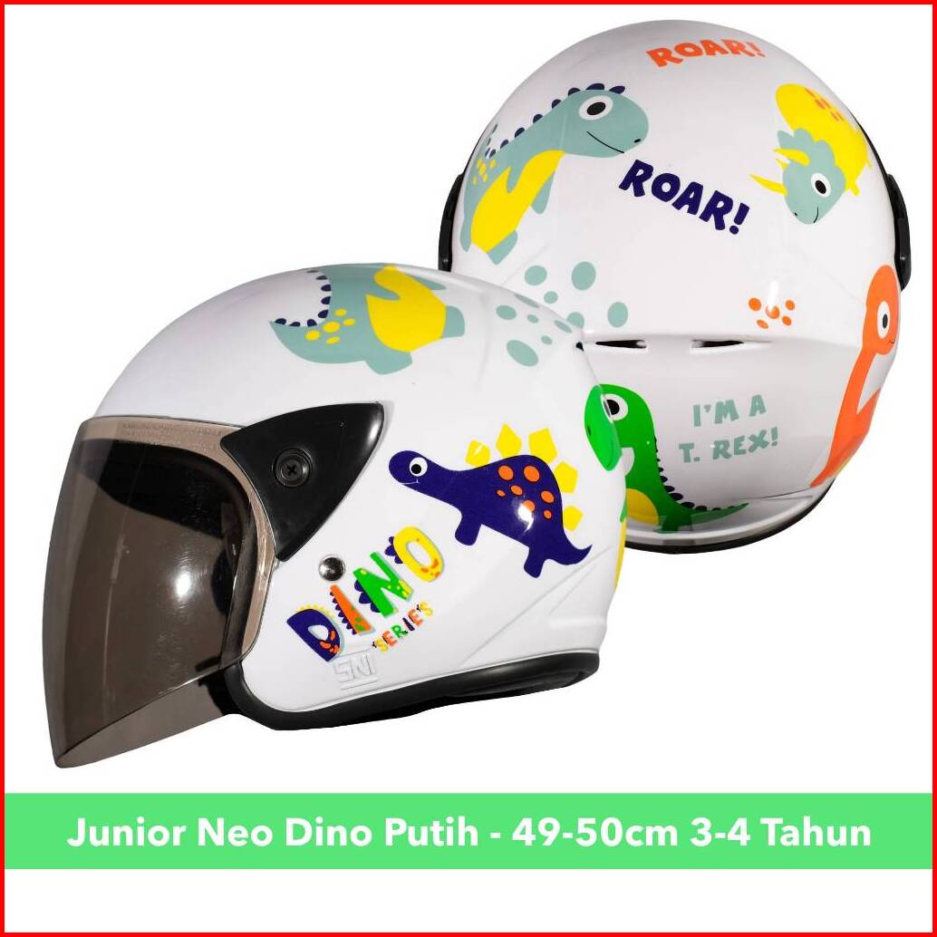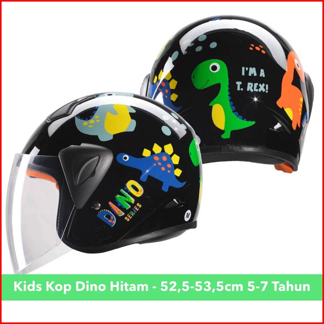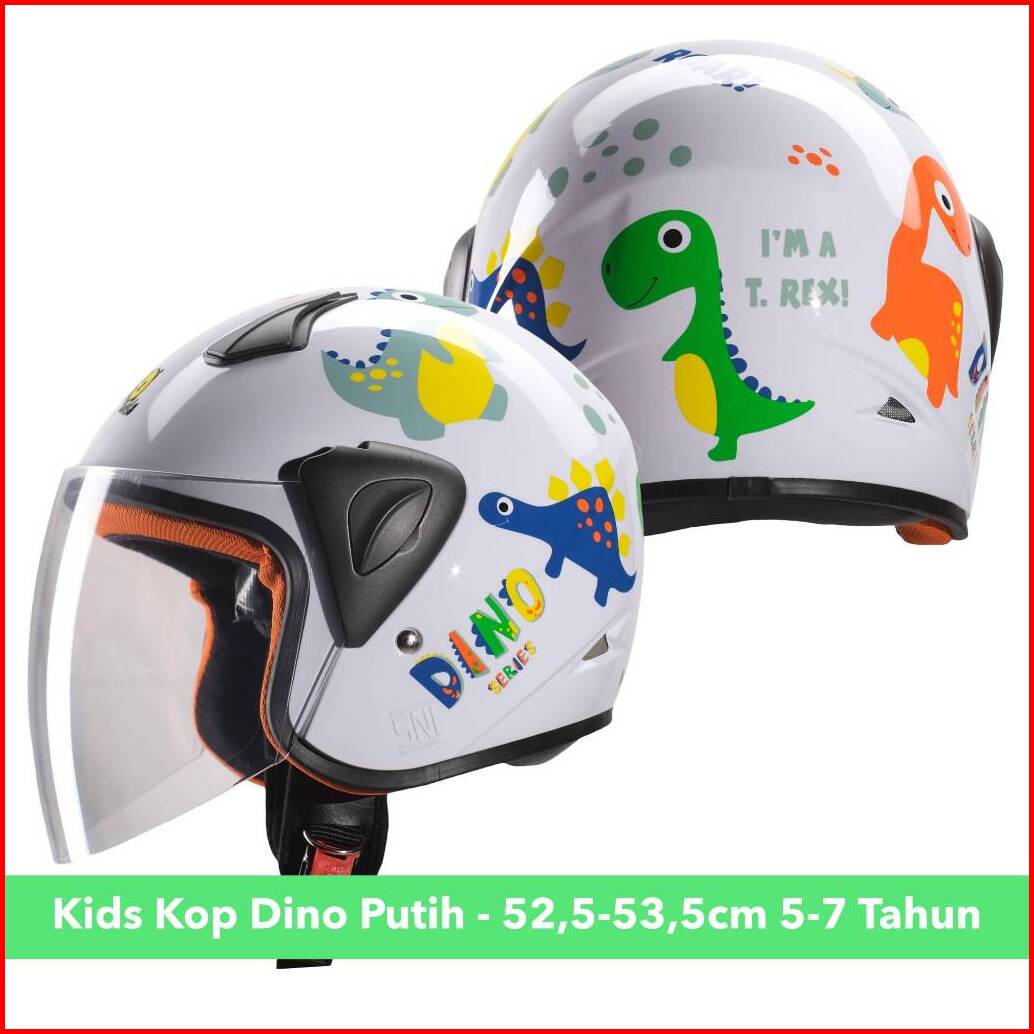 Helm Half Face Anak Lucu Motif Dino Dinosaurus Untuk Usia 2 Hingga 7 Tahun Sni