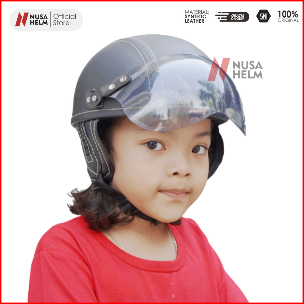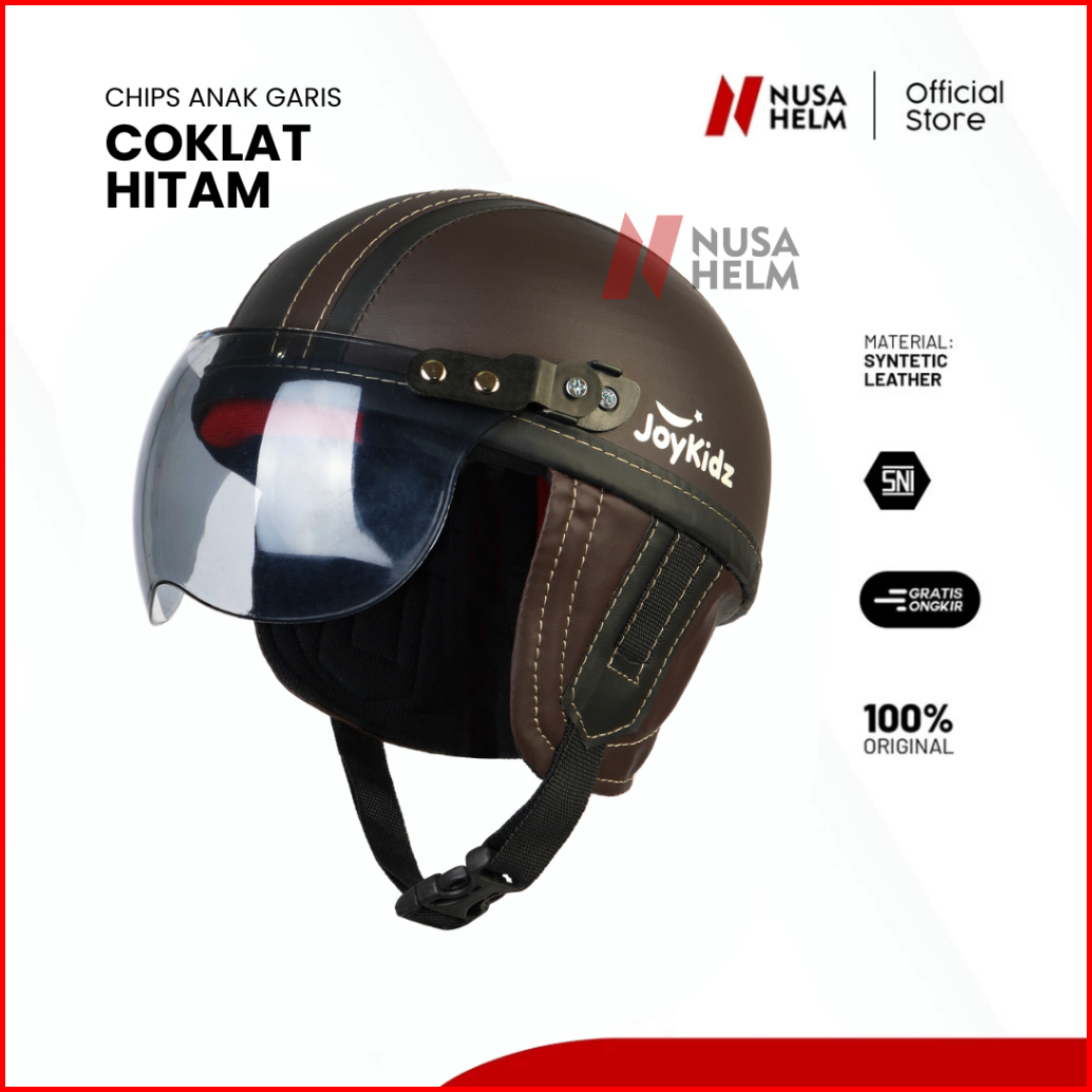 Helm Anak Usia 1 2 3 4 5 Tahun Polos Garis Coklat Hitam Cewe Cowo Retro Chips Sepeda Motor