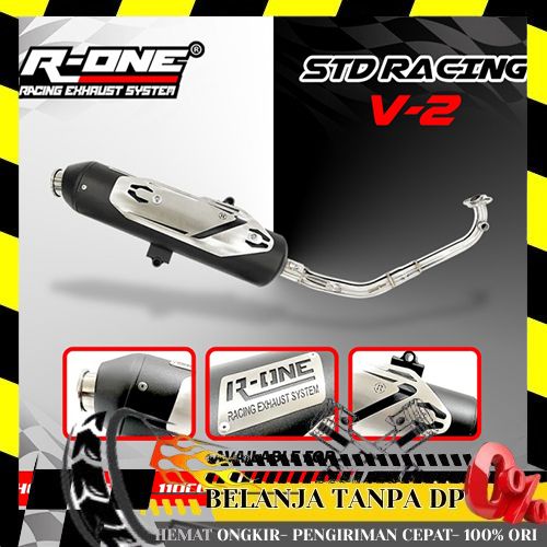 Knalpot R One Racing Muffler V2 STD Full Package untuk Honda Series - BEAT/SCOOPY NEW GRATIS ONGKIR