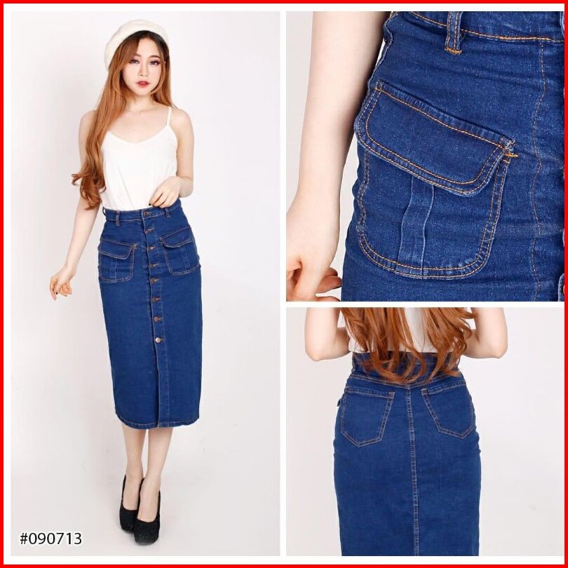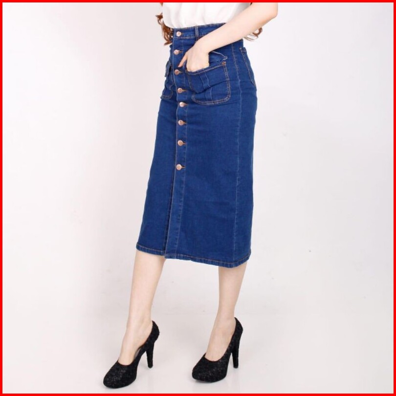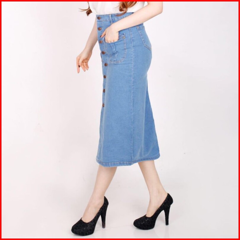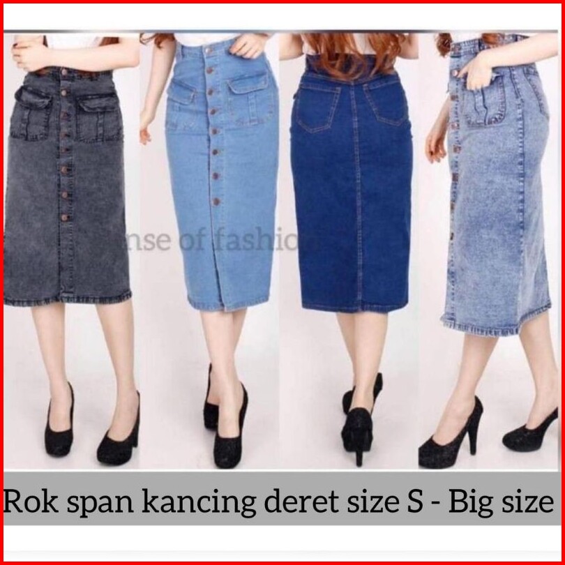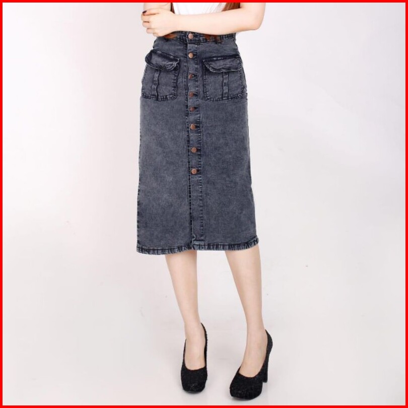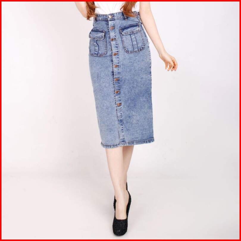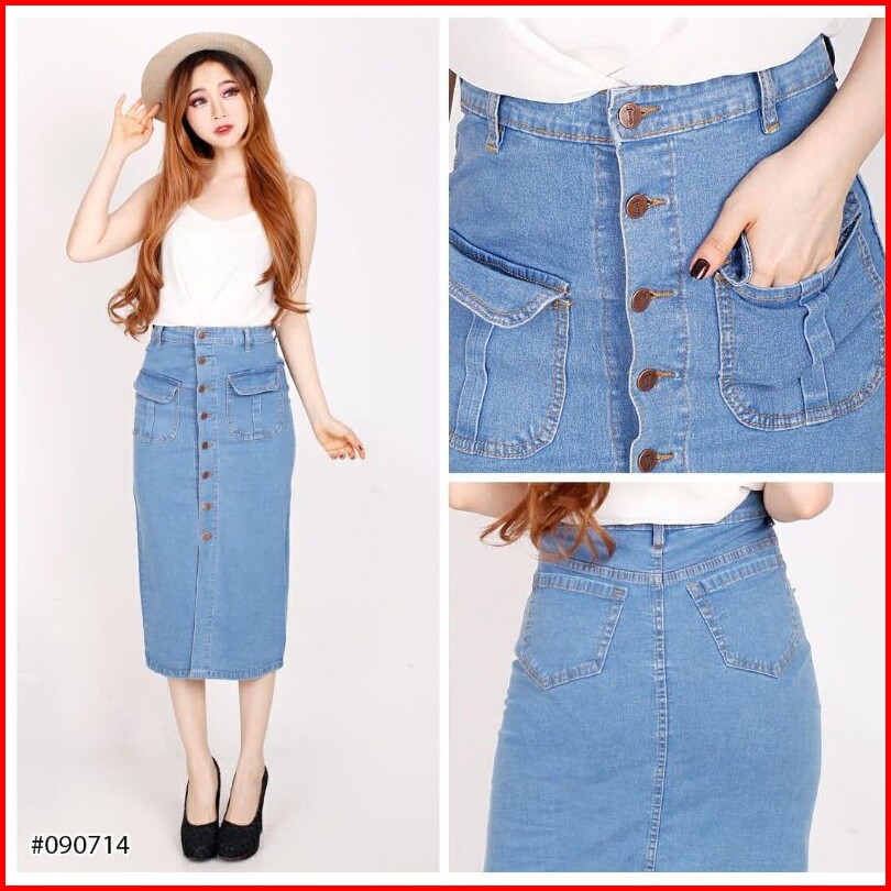 Rok Jeans Span Kancing Deret Rok Span Rok 7 8 Pocket Skirt Sense Of Fashion