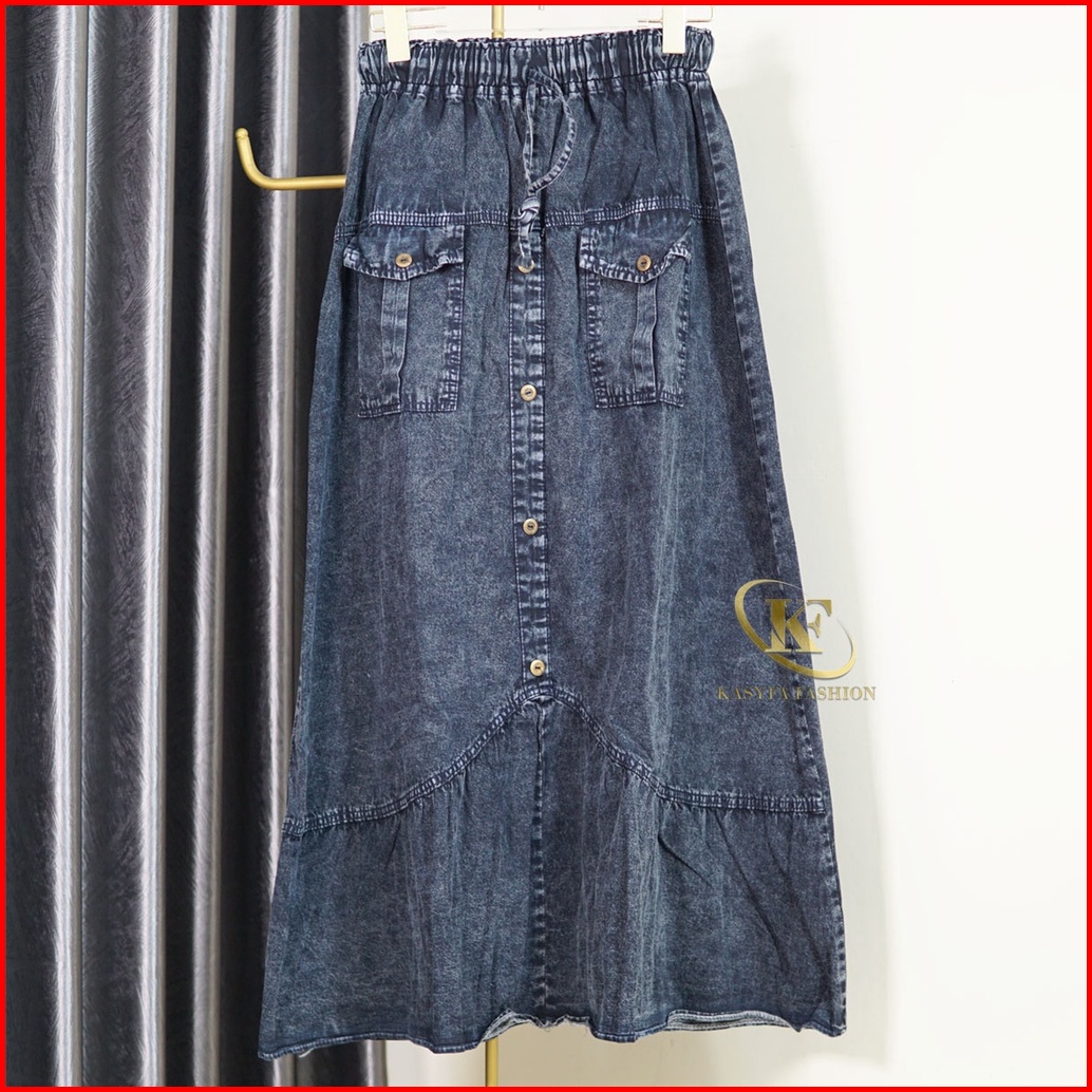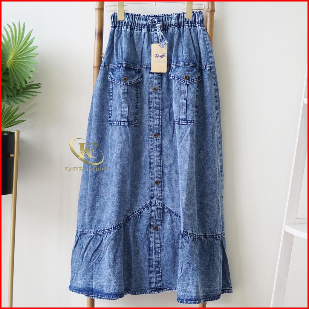 Tb - Venia Rok Jeans Wanita Snowblue Kancing Variasi