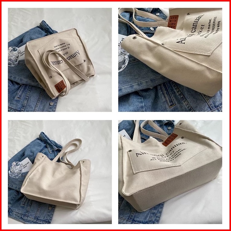 Ibags Tas Tote Bag Kanvas Tote Bag Kuliah Wanita Import 8111