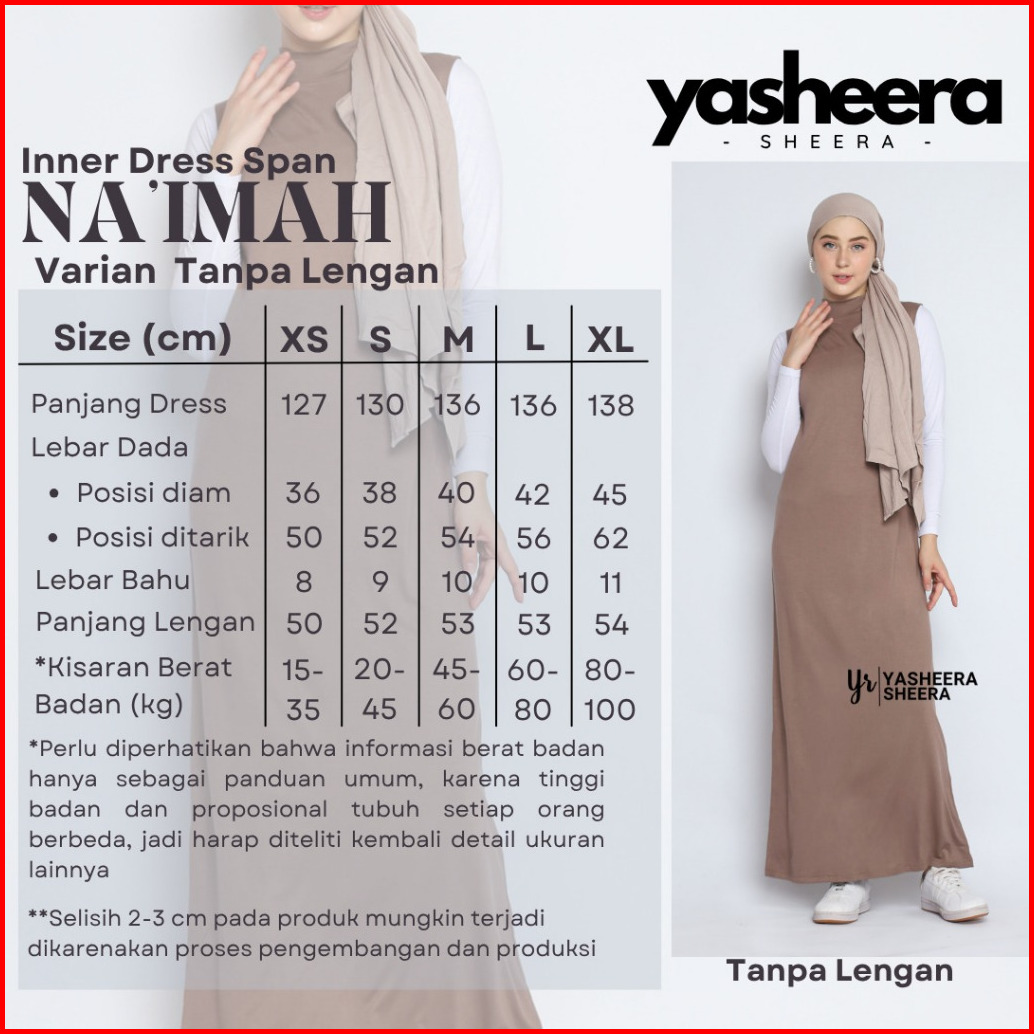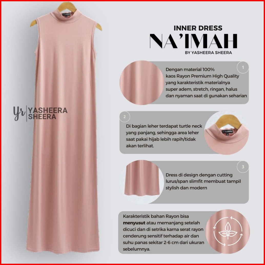 Yasheera Inner Dress Span Naimah Tanpa Lengan Gamis Kaos Rayon Premium Hq Inner Gamis