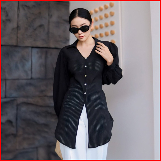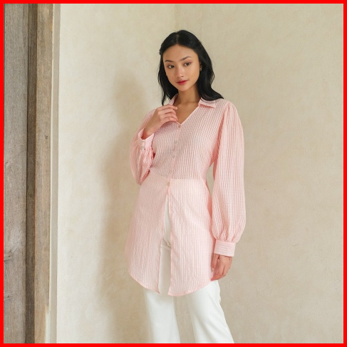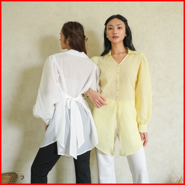 Tavia Gamila Sheer Blouse Blouse Wanita Atasan Wanita Casual Kemeja Wanita Korean Blouse