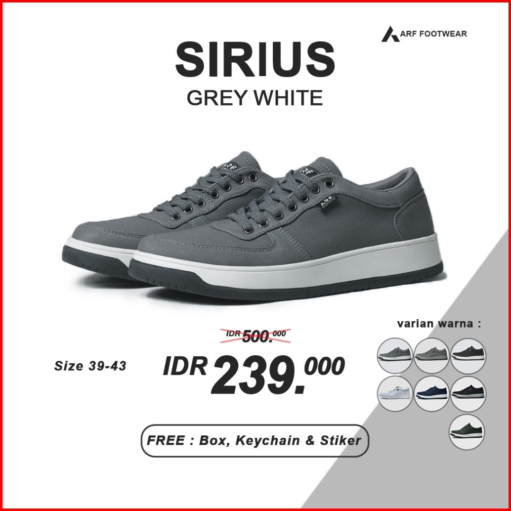 Arf Sirius Grey White Sepatu Sneakers Casual Pria Wanita Distro Kasual Abu Abu Canvas Shoes