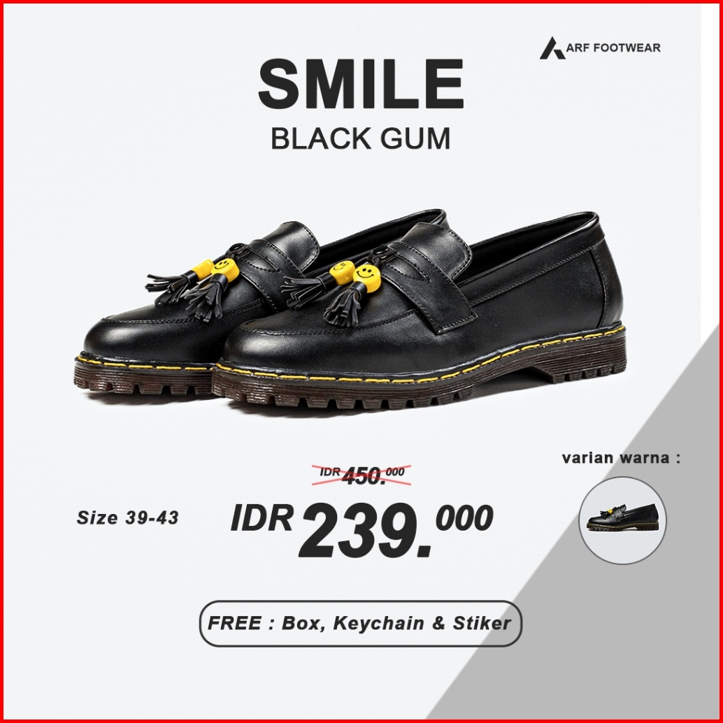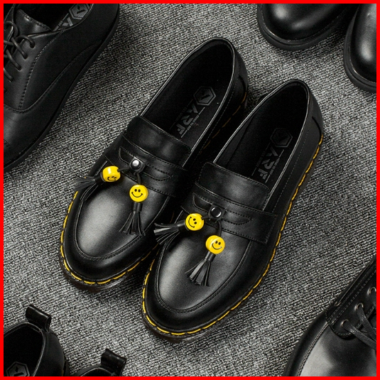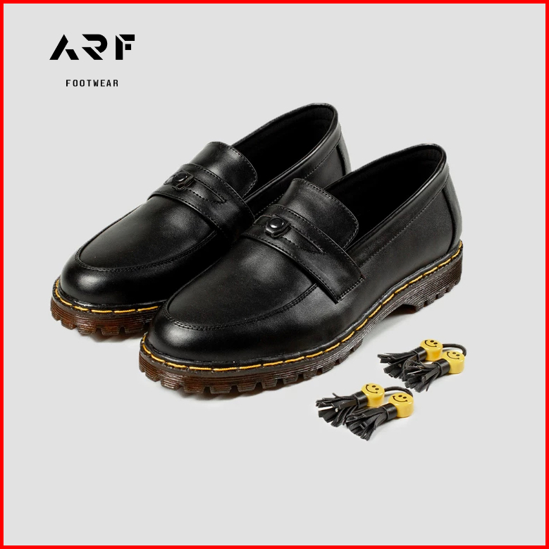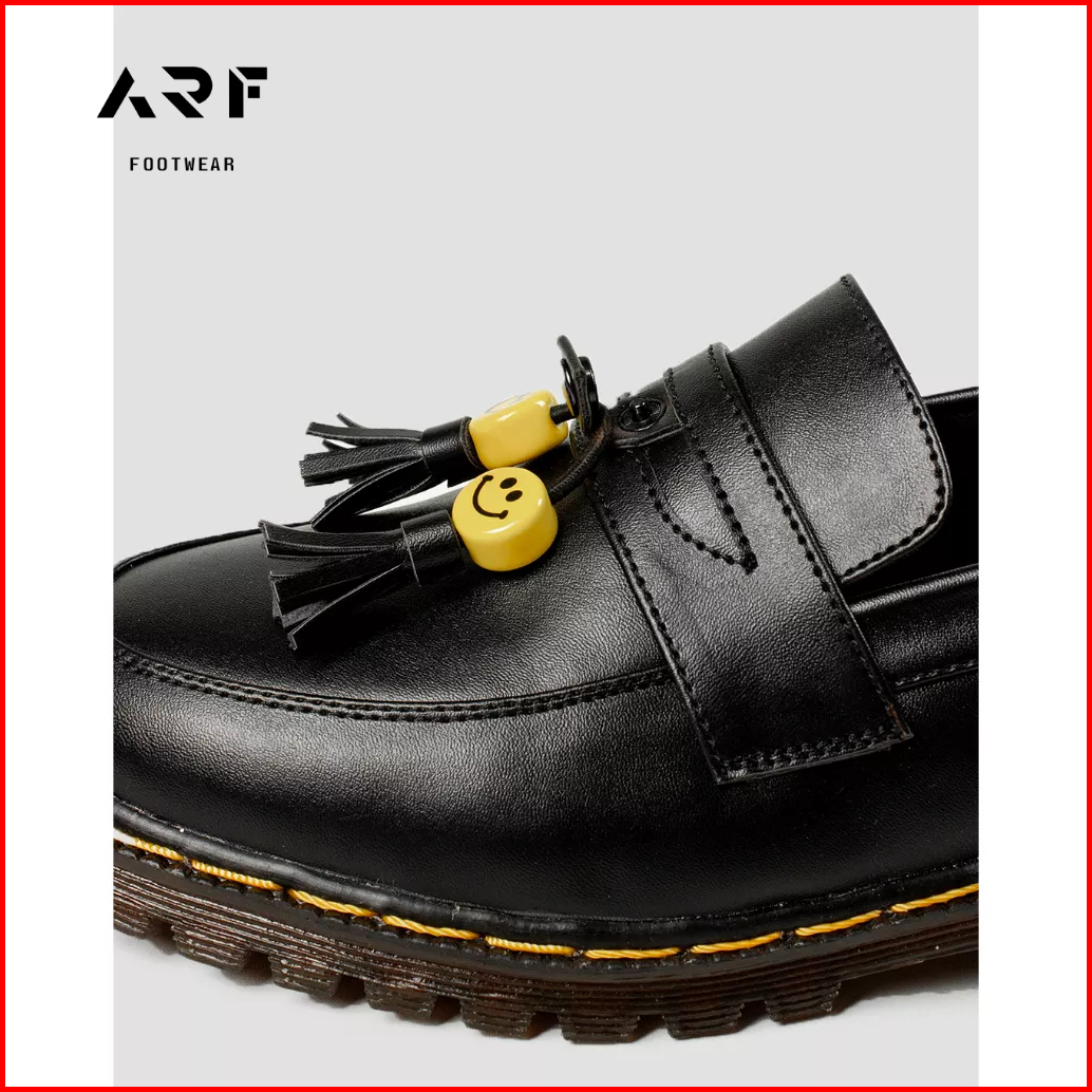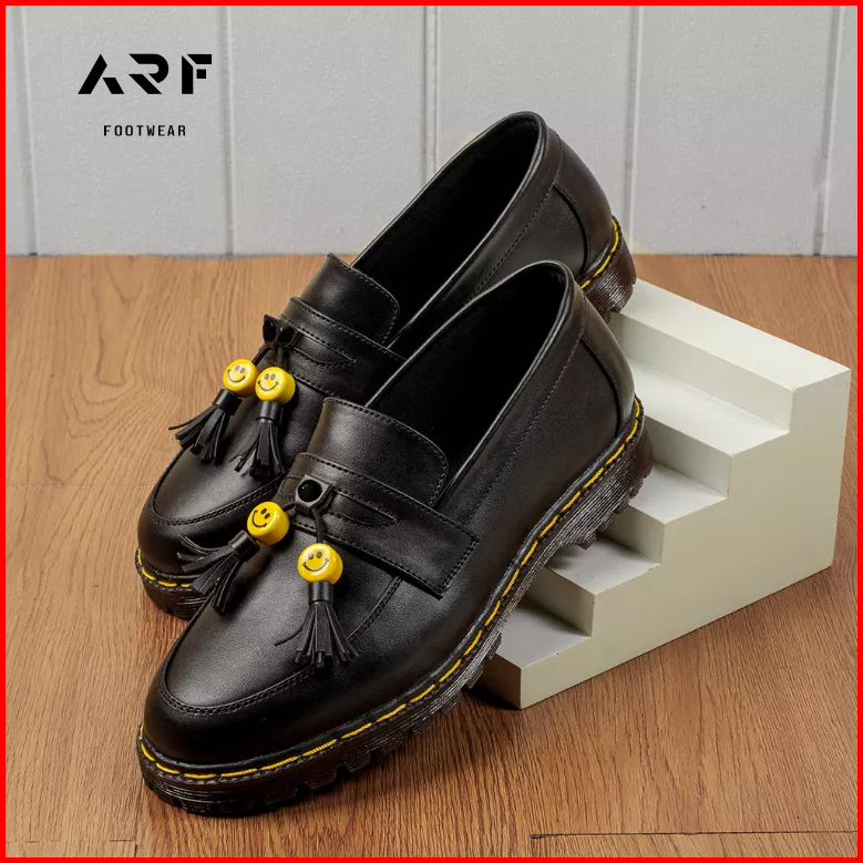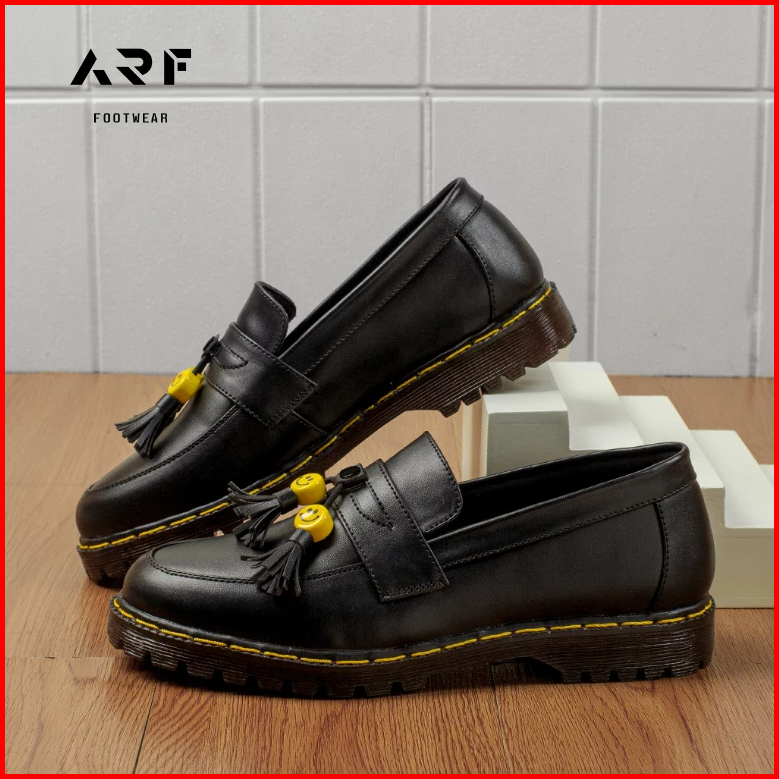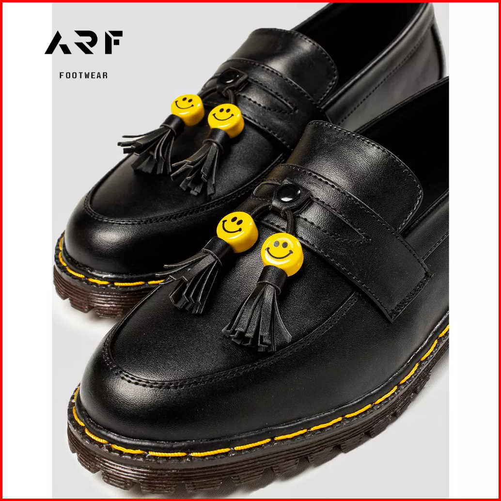 Arf Smile Black Sepatu Loafers Slip On Docmart Pria Wanita Formal Casual Kulit